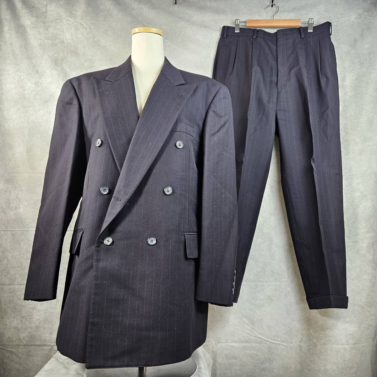 【NEWYORKER】ダブルスーツセットアップ ストライプ L 黒