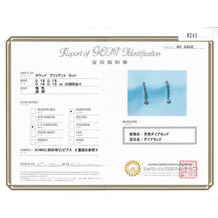 素材 | K14WG D0.15/0.15ct 0.18ct/0.18ct | ||