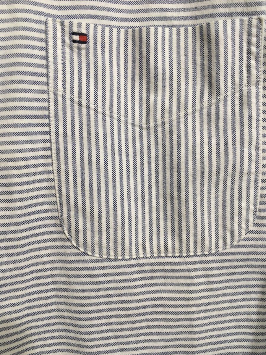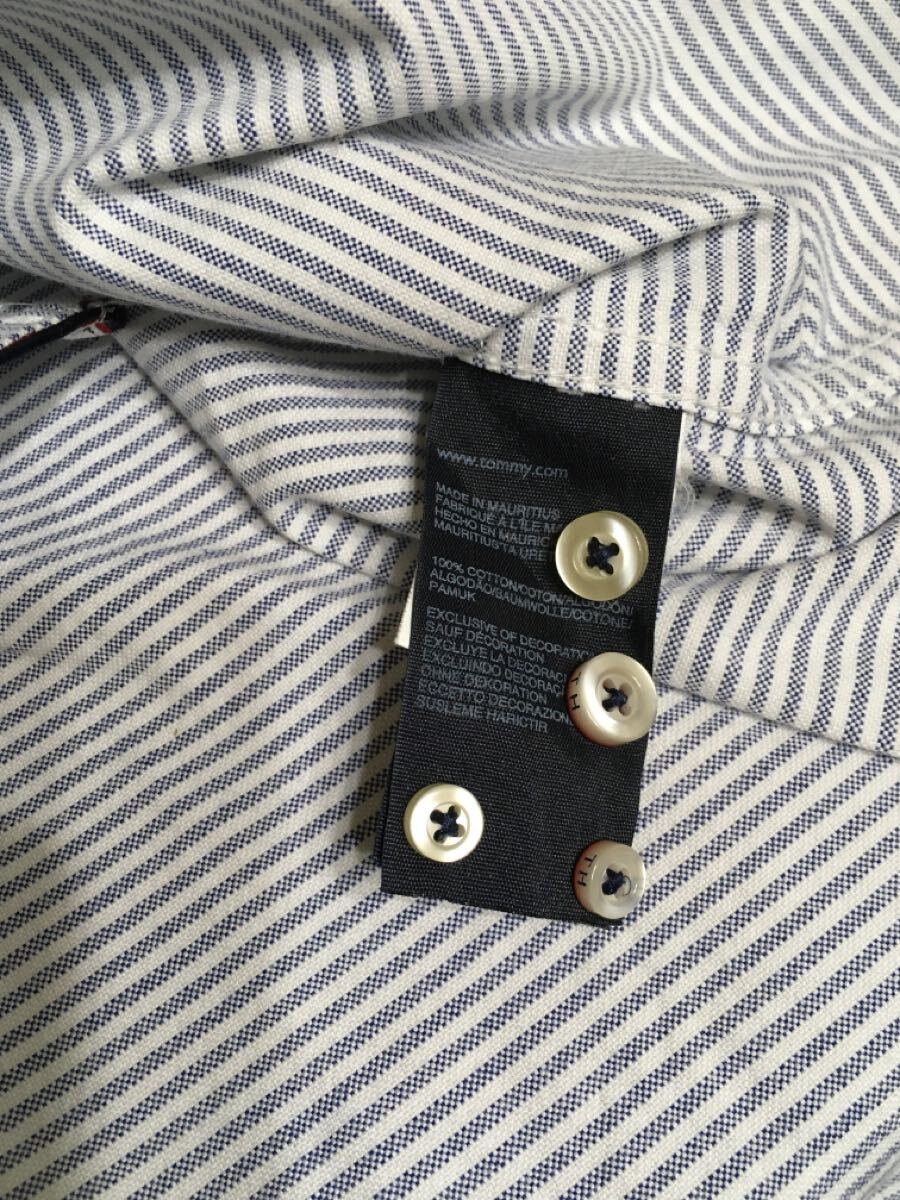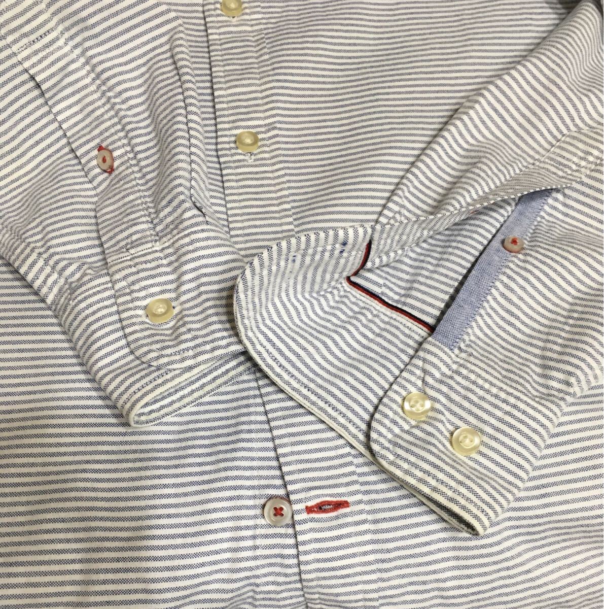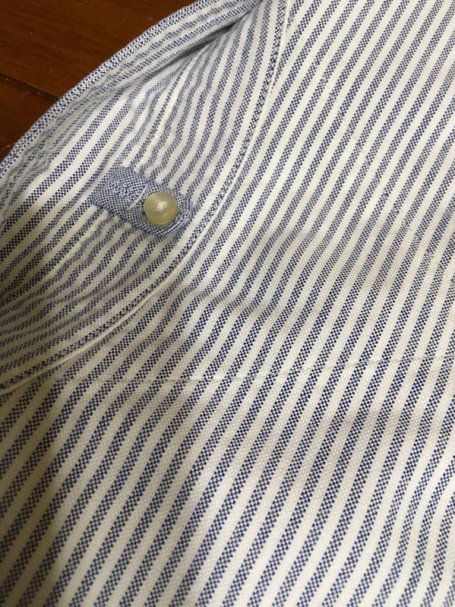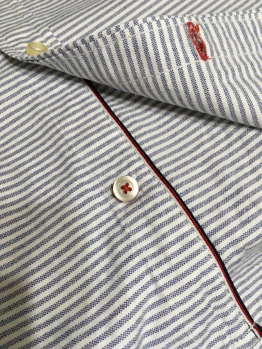 グレーラインにボタンホールの赤色、前立てに隠れ赤と黒の線でおしゃれです。