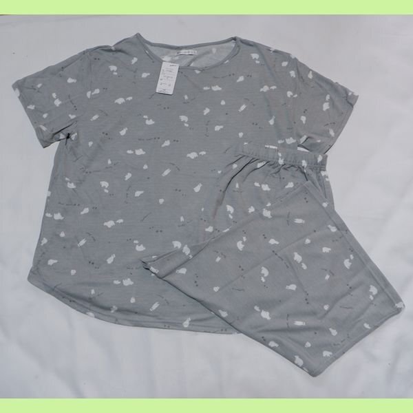 Garconne 4L 半袖シロクマ柄 ルームウェア ゆったりナイトウェア パジャマ グレー 大きいサイズ