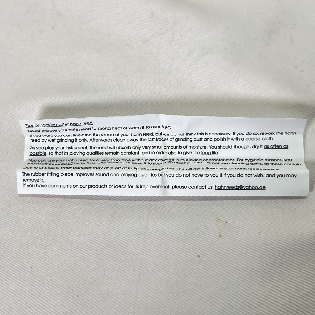 こちらは、ドイツ製の合成リードで知られる Hahn(ハーン)製のクラリネットまたはサクソフォン用リード です。