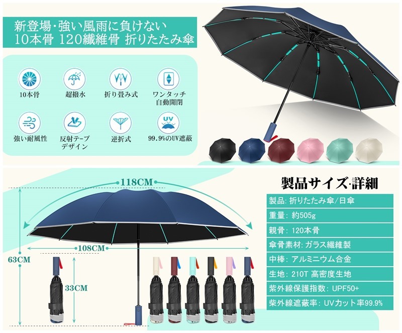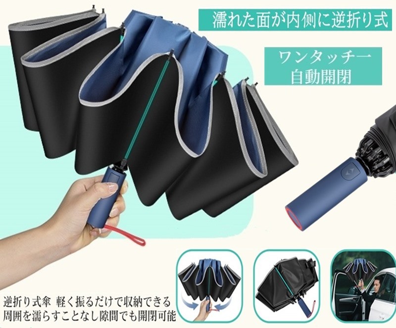 折りたたみ傘 逆さ傘 日傘 ワンタッチ自動開閉 大きいサイズ 折り畳み傘 反射テープ付き 安全&おしゃれ 収納ポーチ付き 晴雨兼用 頑丈 強風 超撥水 UVカット UPF50+ 遮光性 日よけ 10本骨折りたたみ傘 車載傘 自動式 台風対応 梅雨対策 男性 男女兼用 向け ギフト 通勤