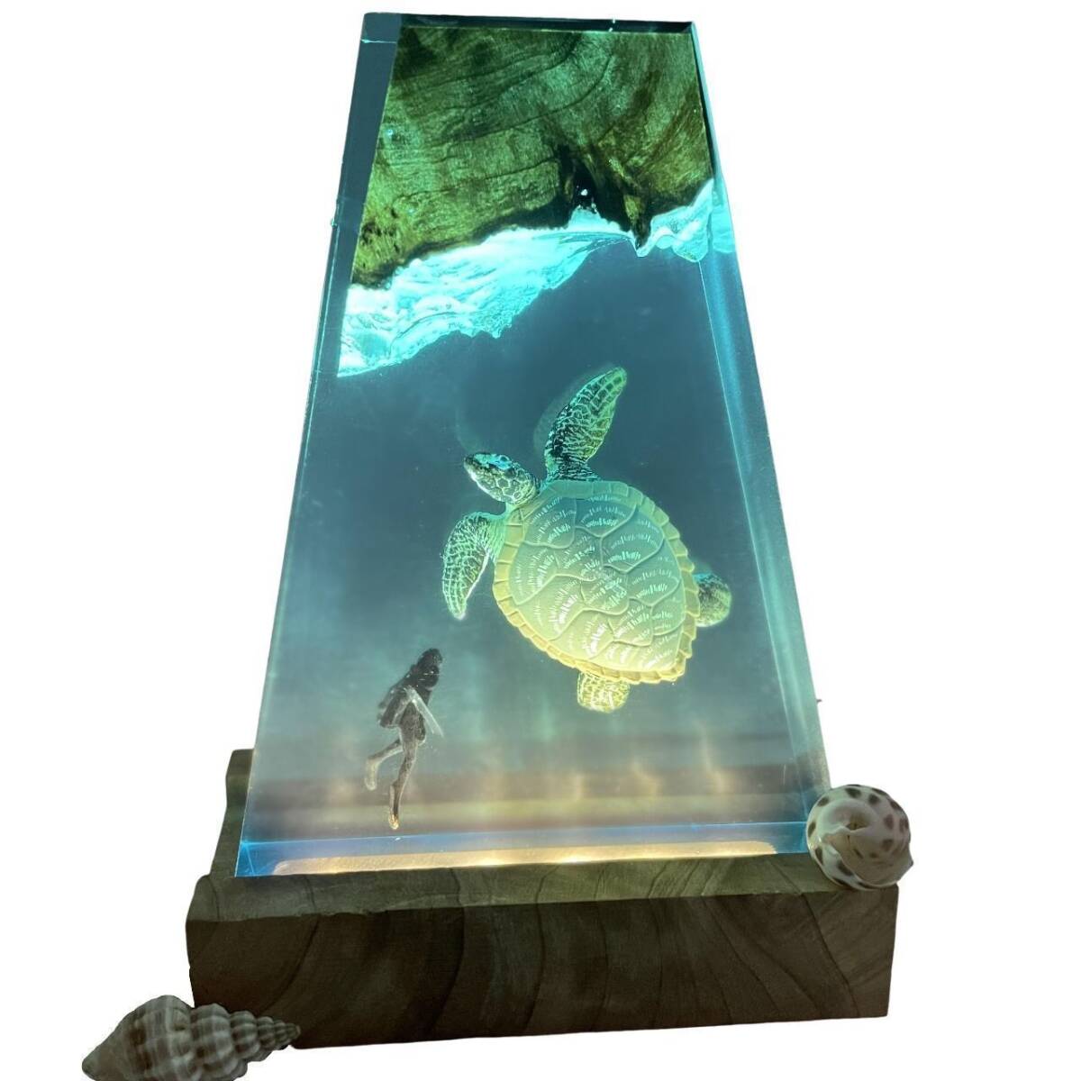 置物 オブジェ ランプ レジン 樹脂 亀 海の中 水槽のような置物 おしゃれ かわいい インテリア 寝室 リビング デコレーション ナイトランプ