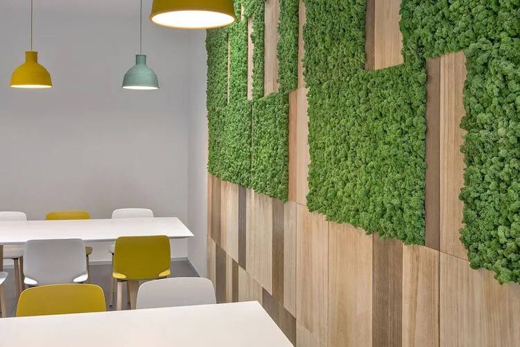 生きている「Moss=苔」をパネルに加工し、壁面や柱、