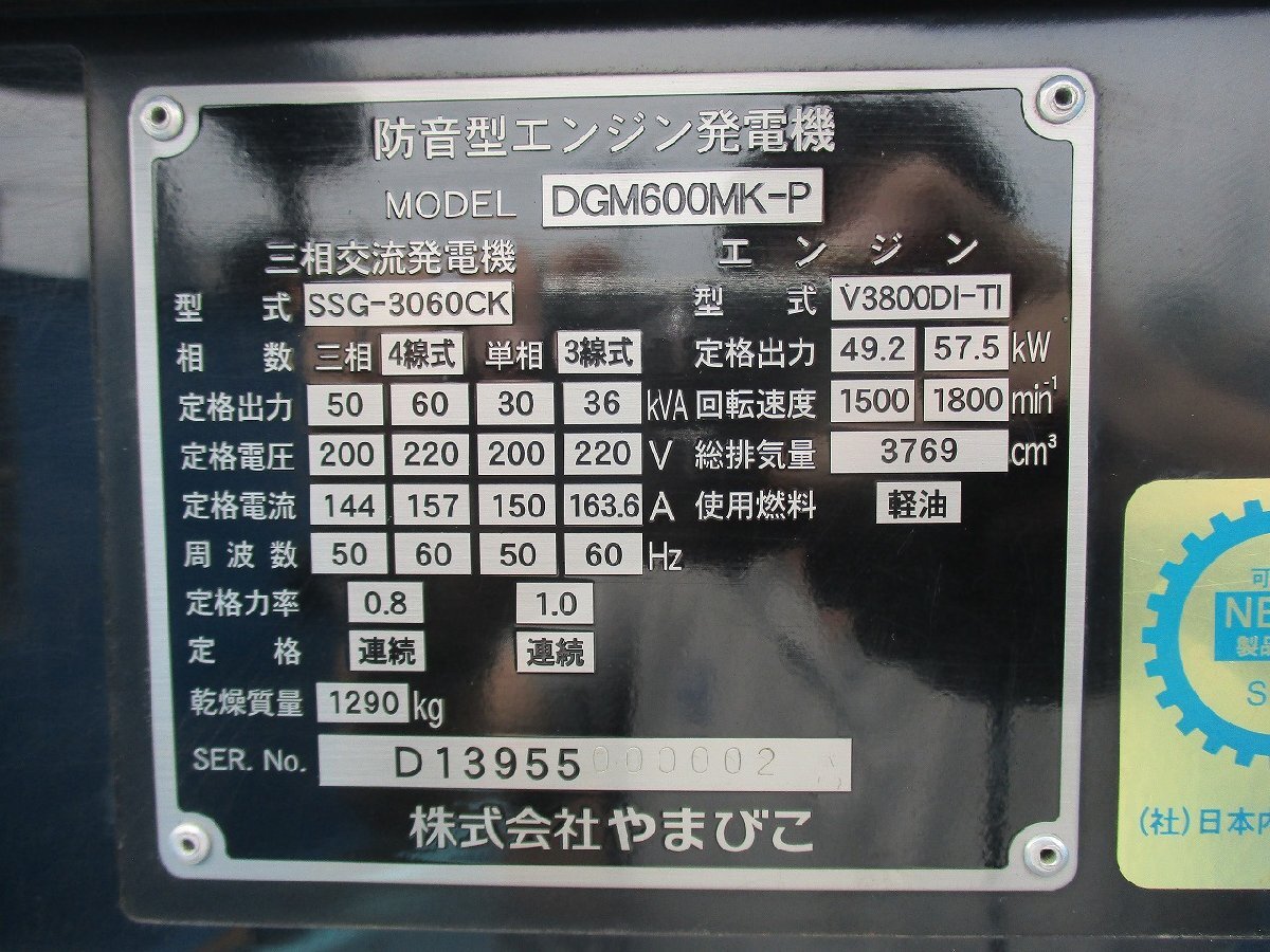 【中古】ディーゼル発電機☆60KVA☆新ダイワ☆DGM600MK-P☆三相・単相3線同時出力☆大型燃料タンク☆☆送料は落札者様負担西濃運輸着払い