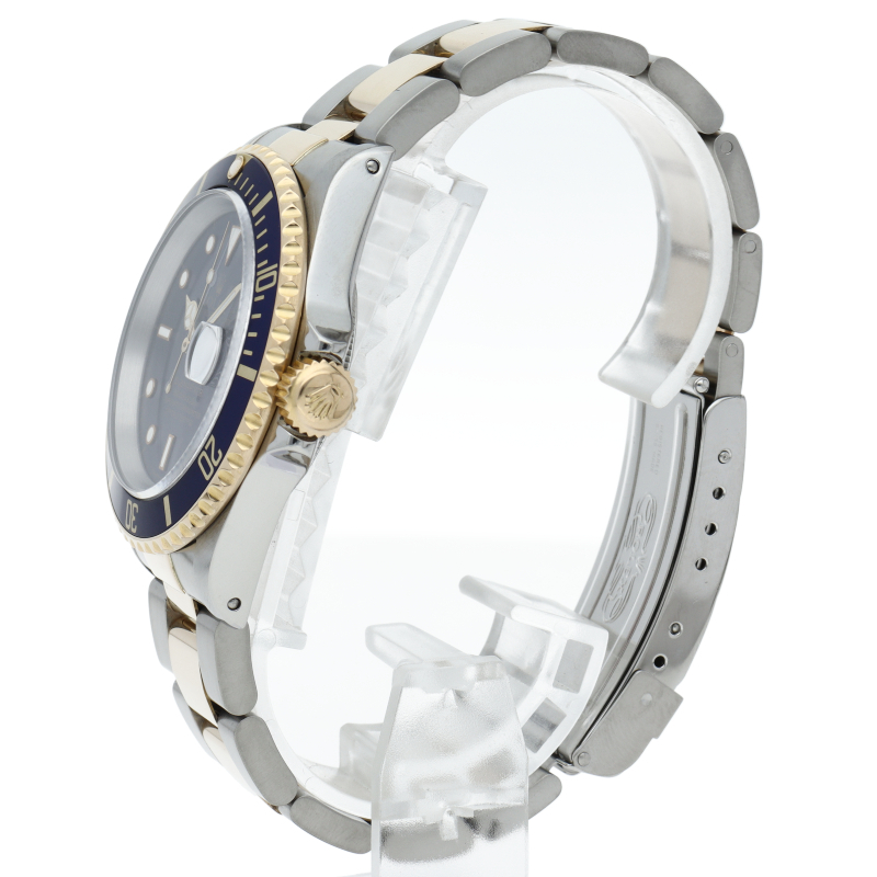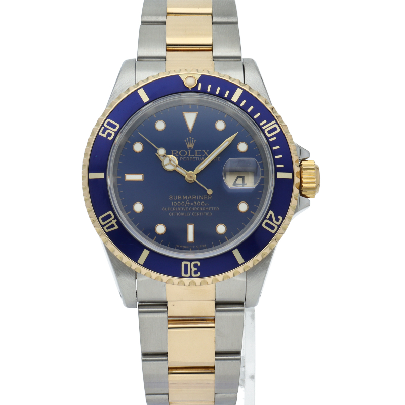 商品説明:ロレックスの中でも特に人気度の高い「サブマリーナ・デイト」のイエローゴールドとステンレスのコンビモデルで高級感溢れる1本。通称「青サブ」。