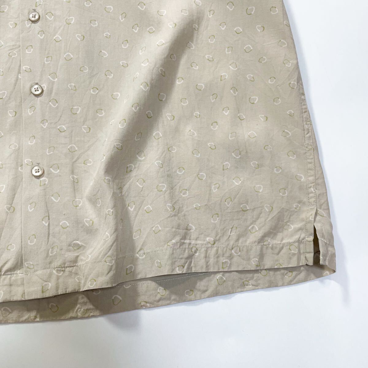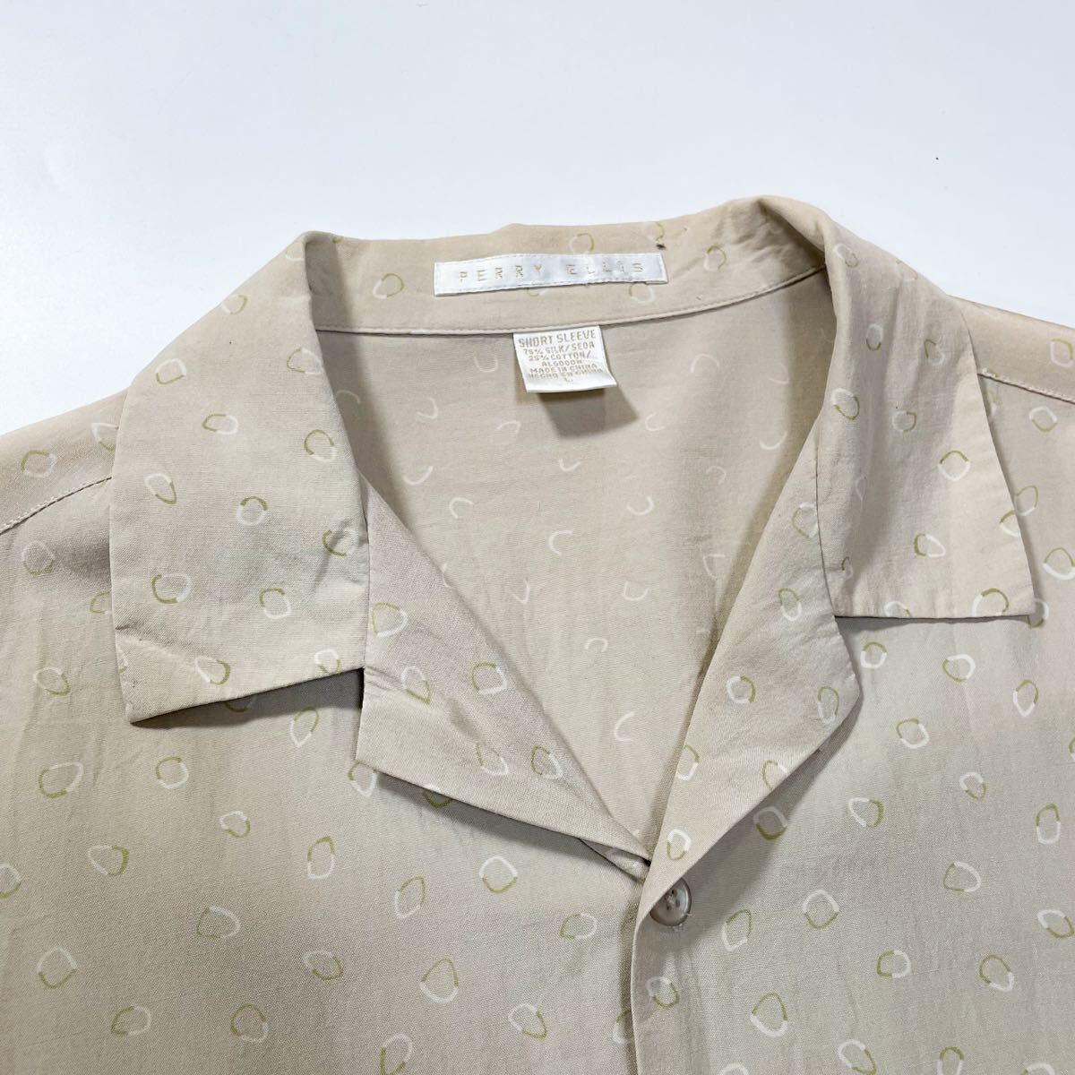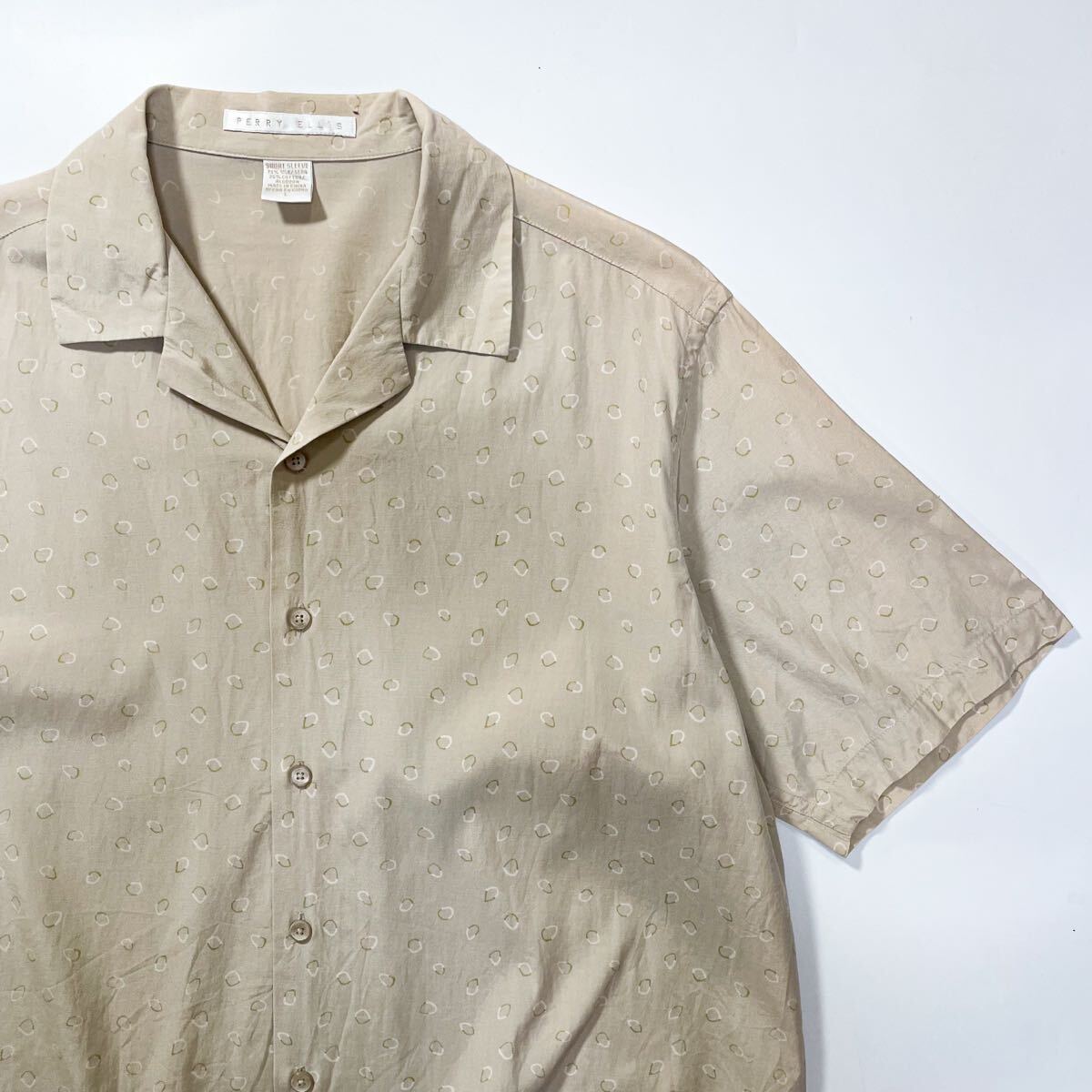 80s 90s Perry ellis ペリーエリス シルク コットン オープンカラー 半袖シャツ 開襟 総柄 ドット ベージュ ビンテージ usa old L アロハ