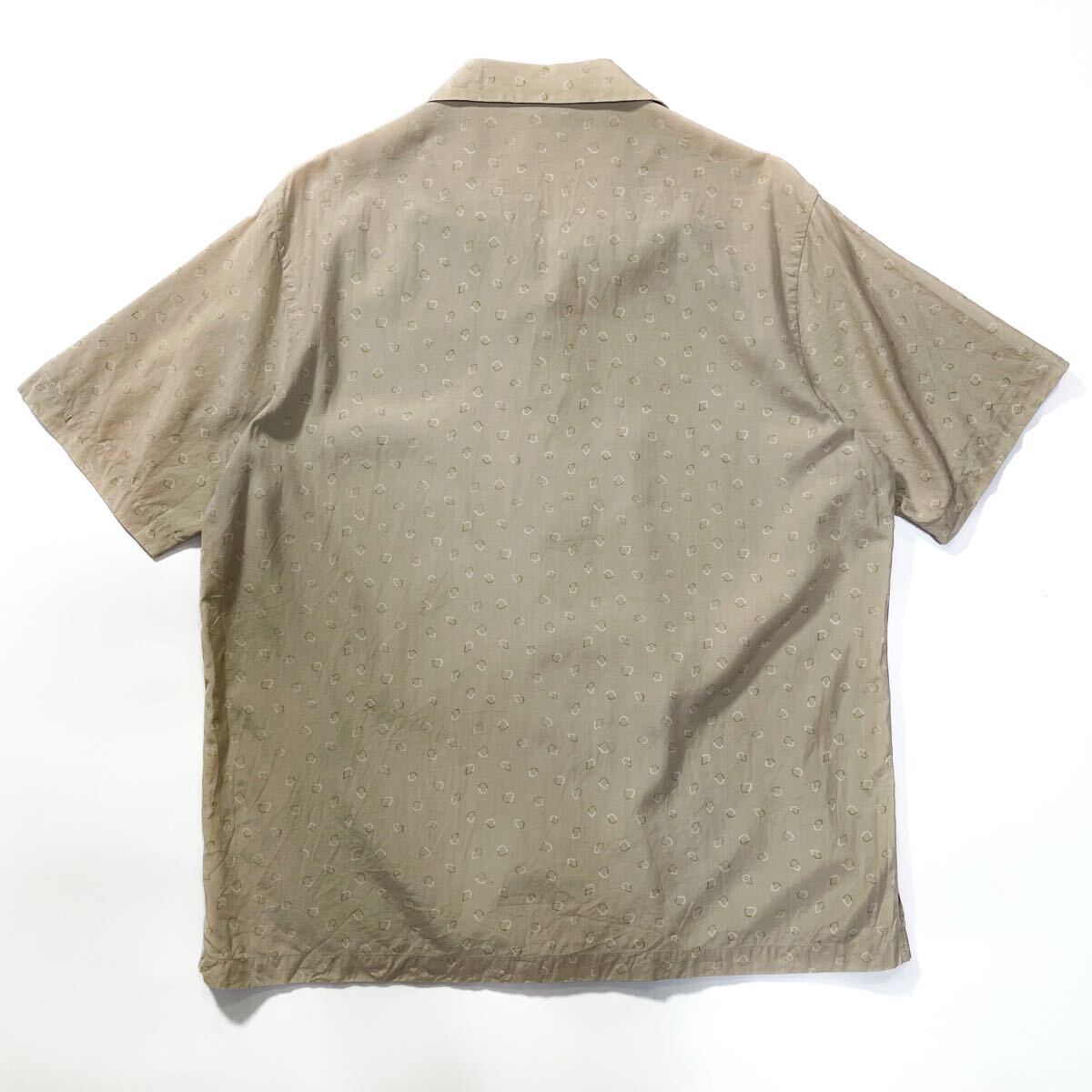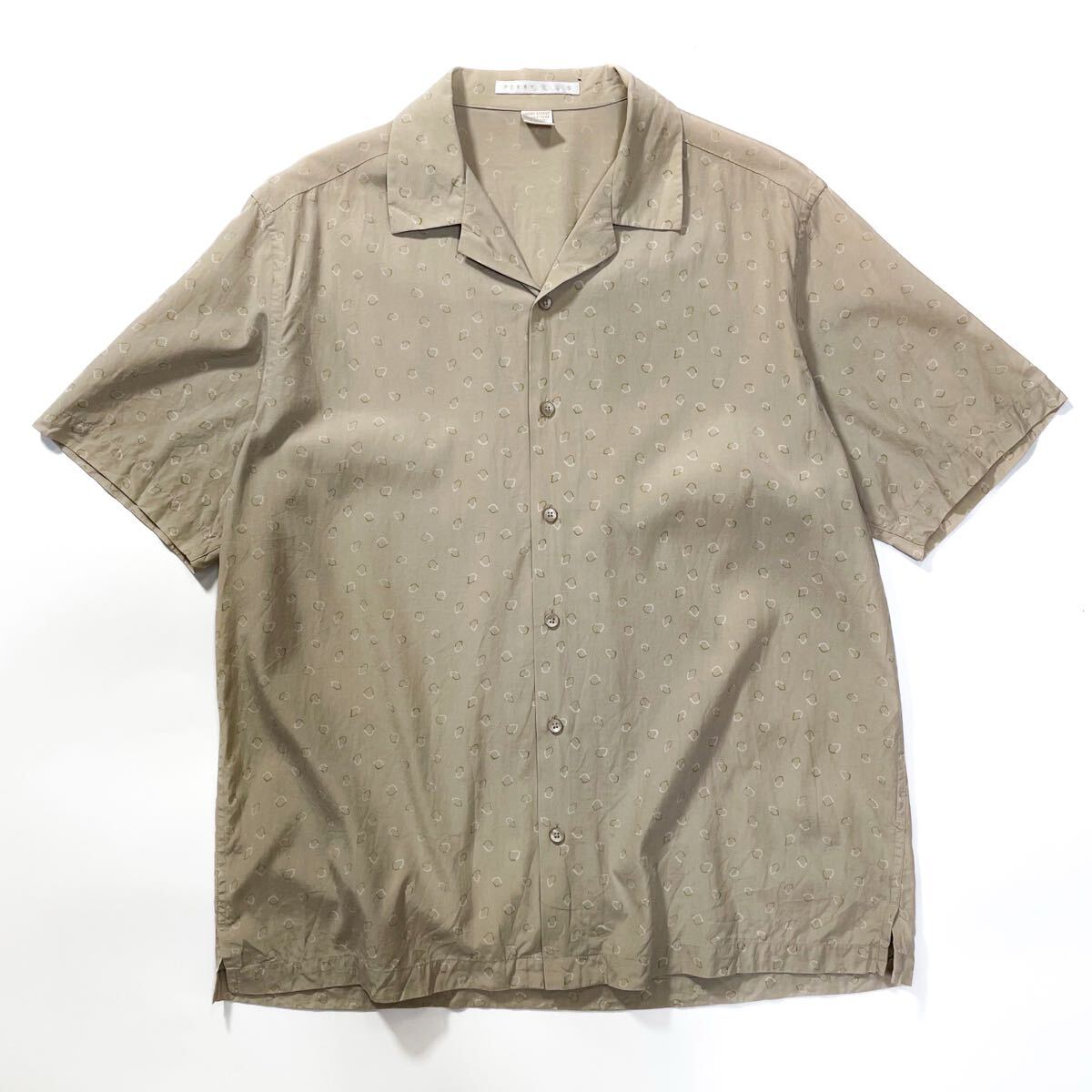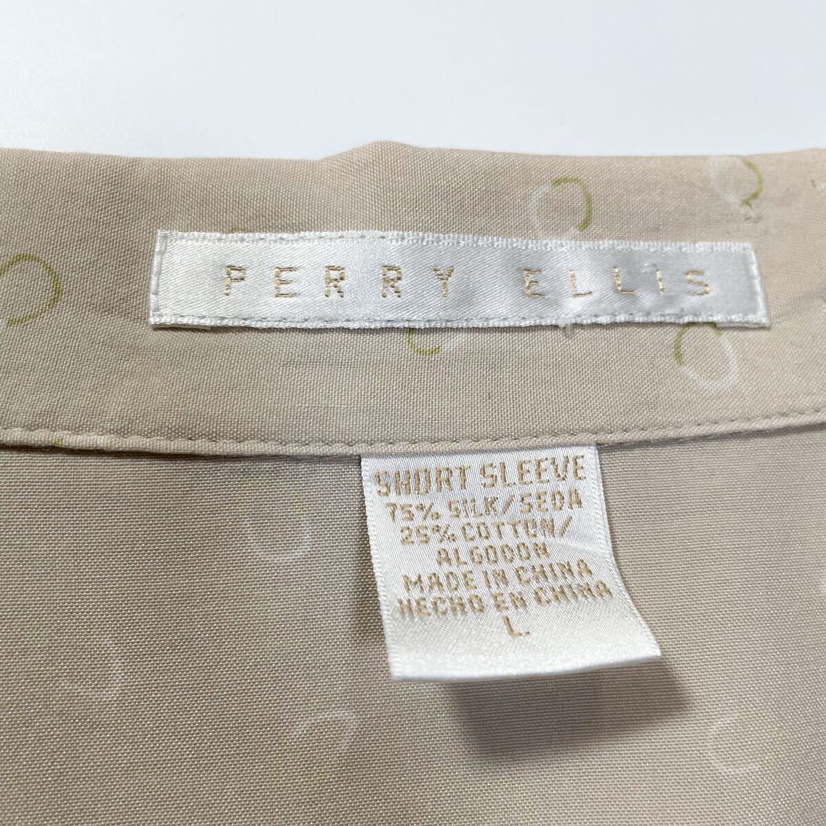 80s 90s Perry ellis ペリーエリス シルク コットン オープンカラー 半袖シャツ 開襟 総柄 ドット ベージュ ビンテージ usa old L アロハ