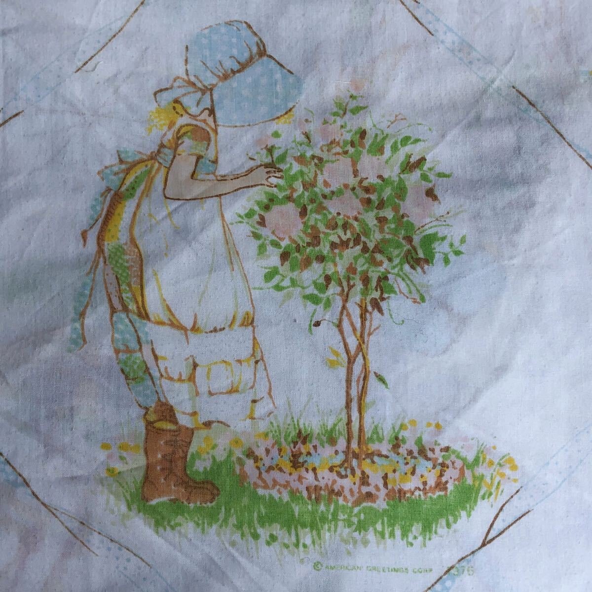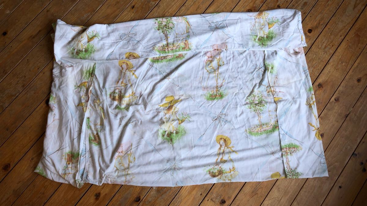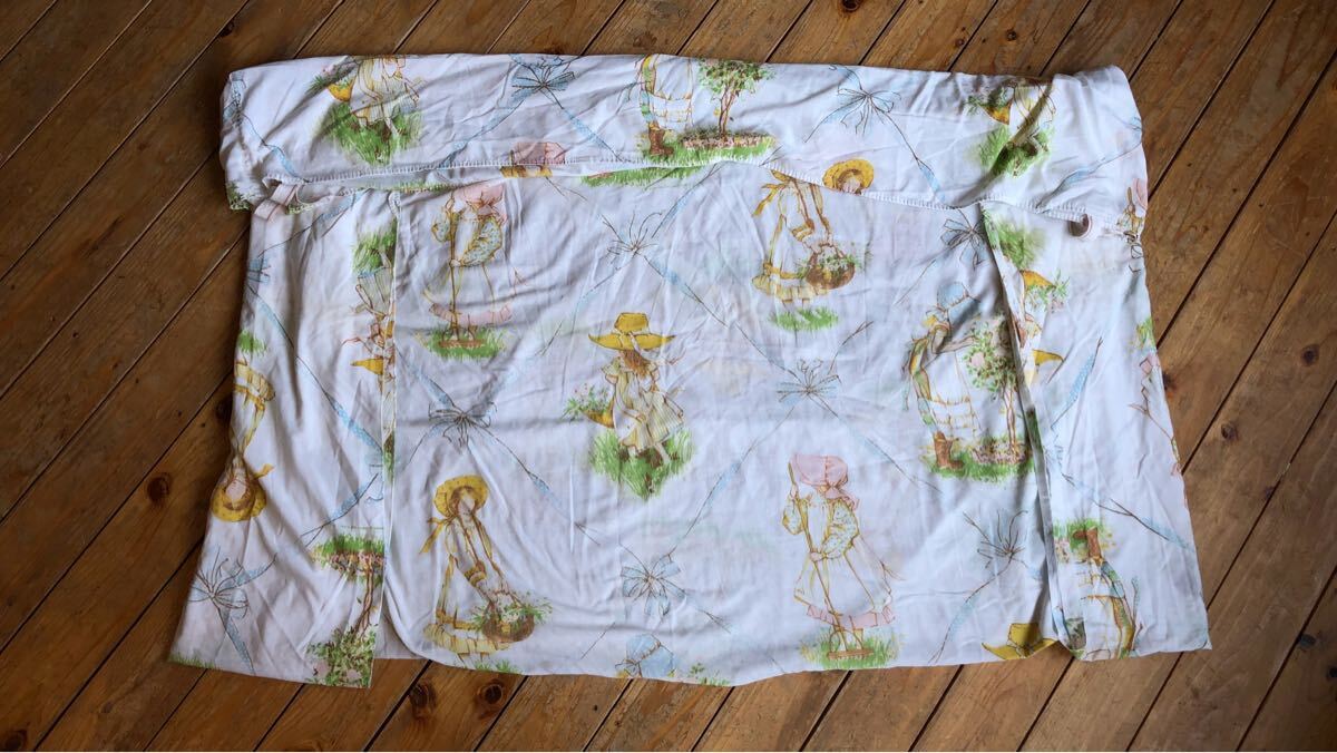 アメリカで購入したセカンドハンド(古着)の、 ホリーホビーのベッドシーツです。