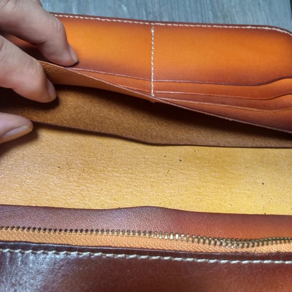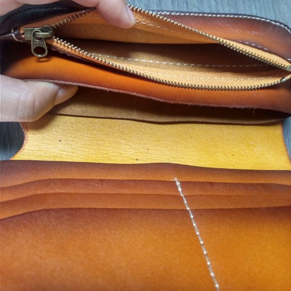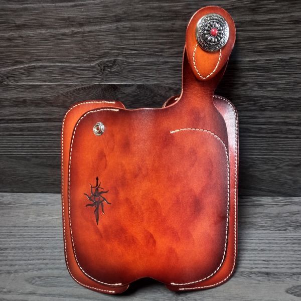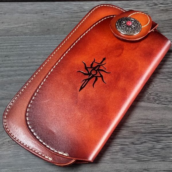 | ハンドメイドのバイカーズウォレットです。 丈夫な縫製と高級感のある表面の作りで長くご愛用いただける長財布です。 使い込むほどに独特の艶や風合いが醸し出されます。 ハンドメイドで非常に綺麗に丁寧に仕上げた高級感あふれる長財布です。 ※天然革を使用してハンドメイドで作成していますので、革の色合いやシワや彫りや作成上の小さな傷等は若干ですが個体により違いがあります。 ※他にも多数の商品を出品しておりますのでご覧ください。 ■状態:新品 ■素材:高級牛革使用(サドルレザー) ■サイズ:約210×98×40mm ■カード入れ:6枚まで対応(裏面がポケット収納になっています。) ■ファスナー付小銭入れ ■ポケット:4ケ所(カード入れ、小銭入れの裏面がポケットになっていて大型・中型の2段ポケットになってます。) ■チェーンは無いです。 ■箱はありません。 | |||