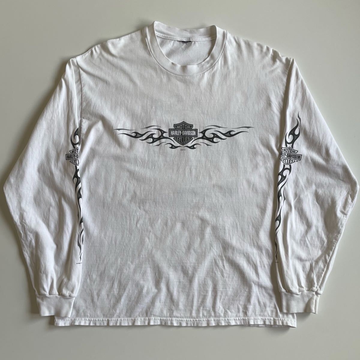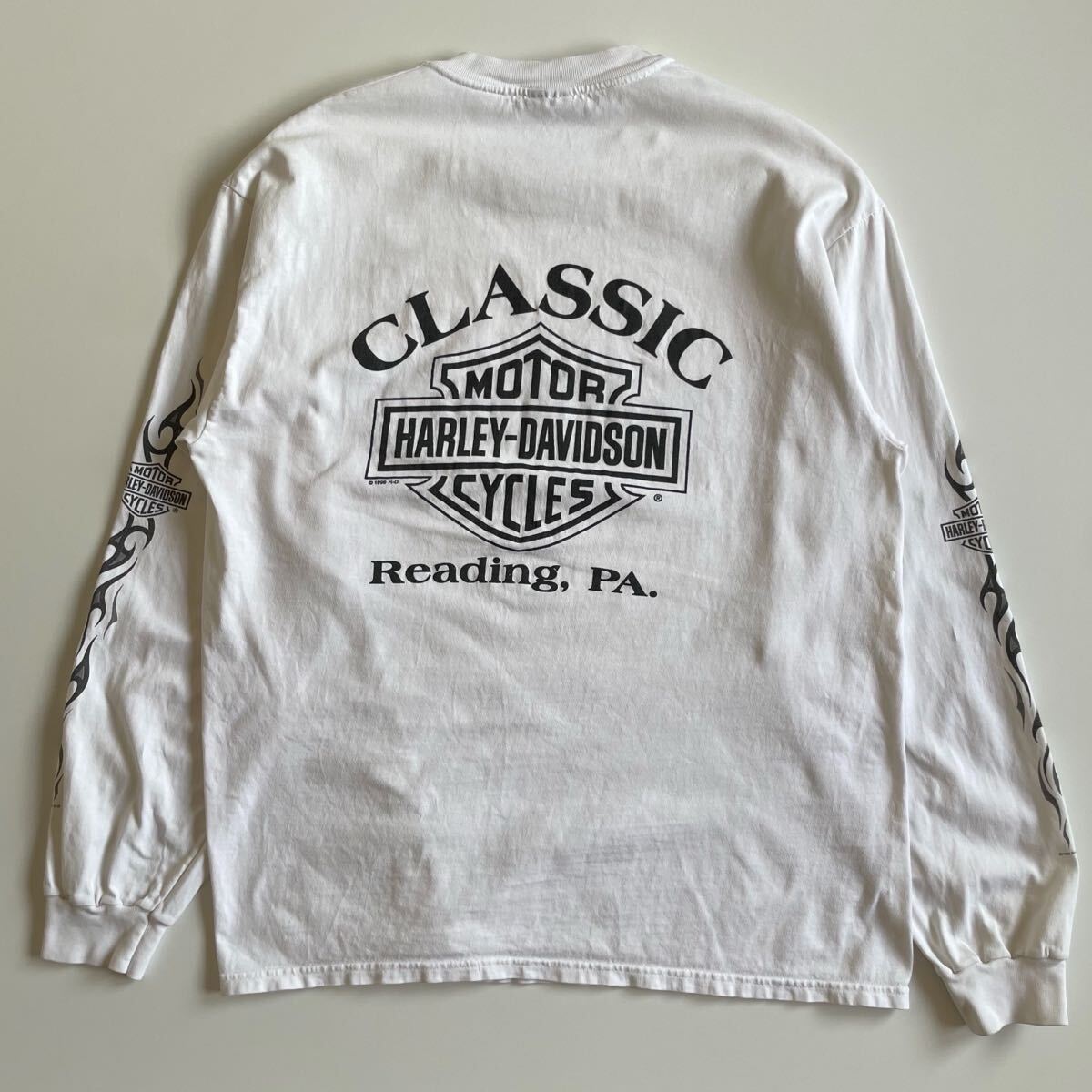 90年代Harley Davidsonの袖フレイムプリントTシャツです。