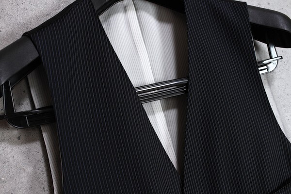 上質な艶のあるシルク混のウール生地を使用したカラーピンストライプが特徴の使い勝手の良いジレです。