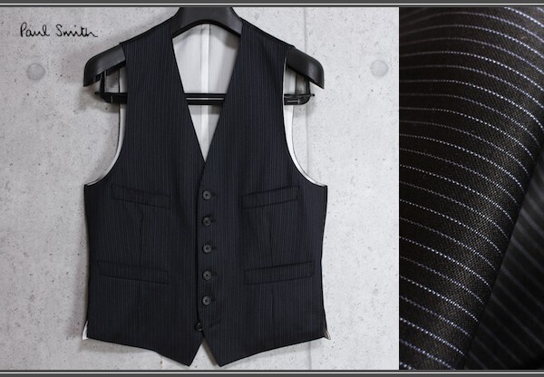 ポールスミス(PAUL SMITH)の日本製 シルク混 ウール カラー ピンストライプ ドレスジレ。