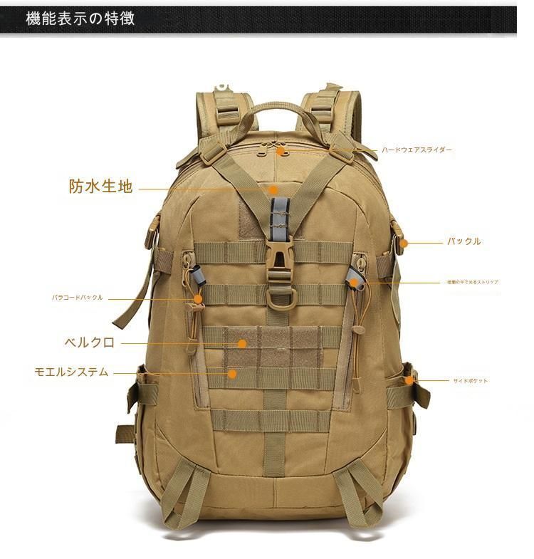アウトドア リュック バッグ カーキ 大容量 40L ミリタリーリュック ミリタリー 防水リュック 通学 登山 キャンプ 撥水 はっ水 軽量 旅行