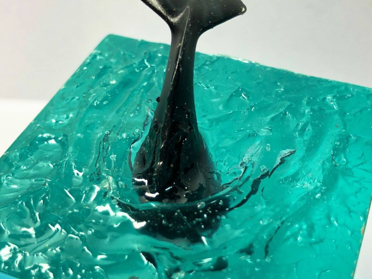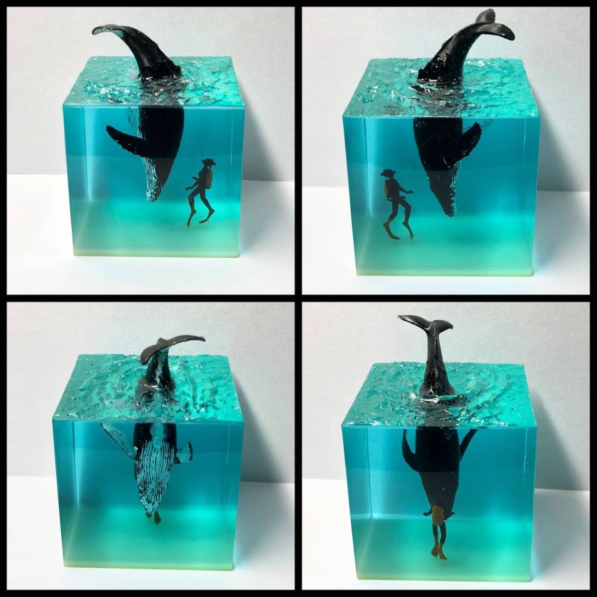 USBケーブル付きの木製台とエポキシ樹脂で作られたクジラは、深海をイメージした美しいブルーの光を放ちます。