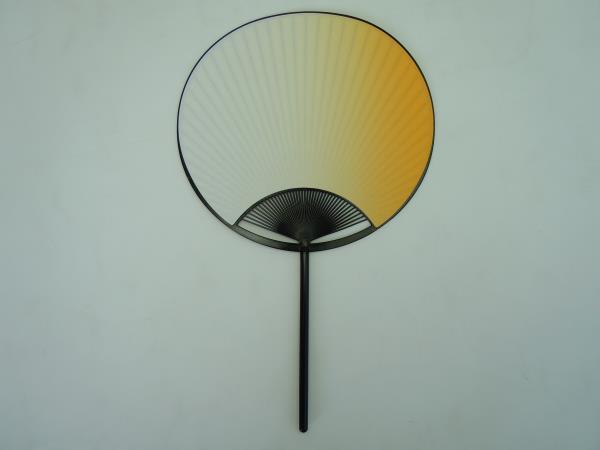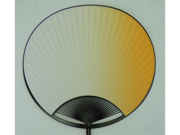 3807,踊り団扇 丸柄小丸うちわ 黒プラスチック柄 山吹
