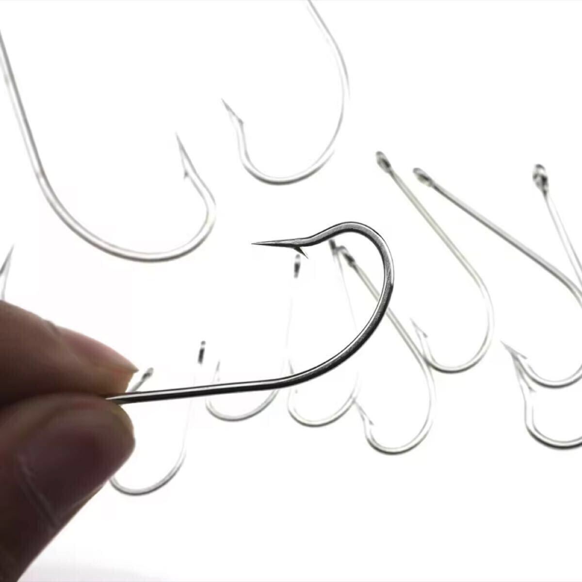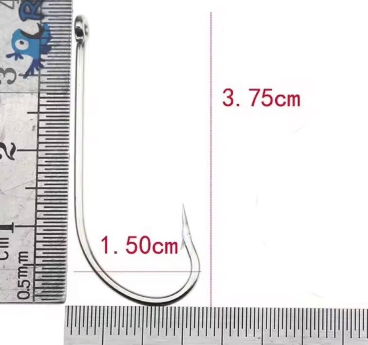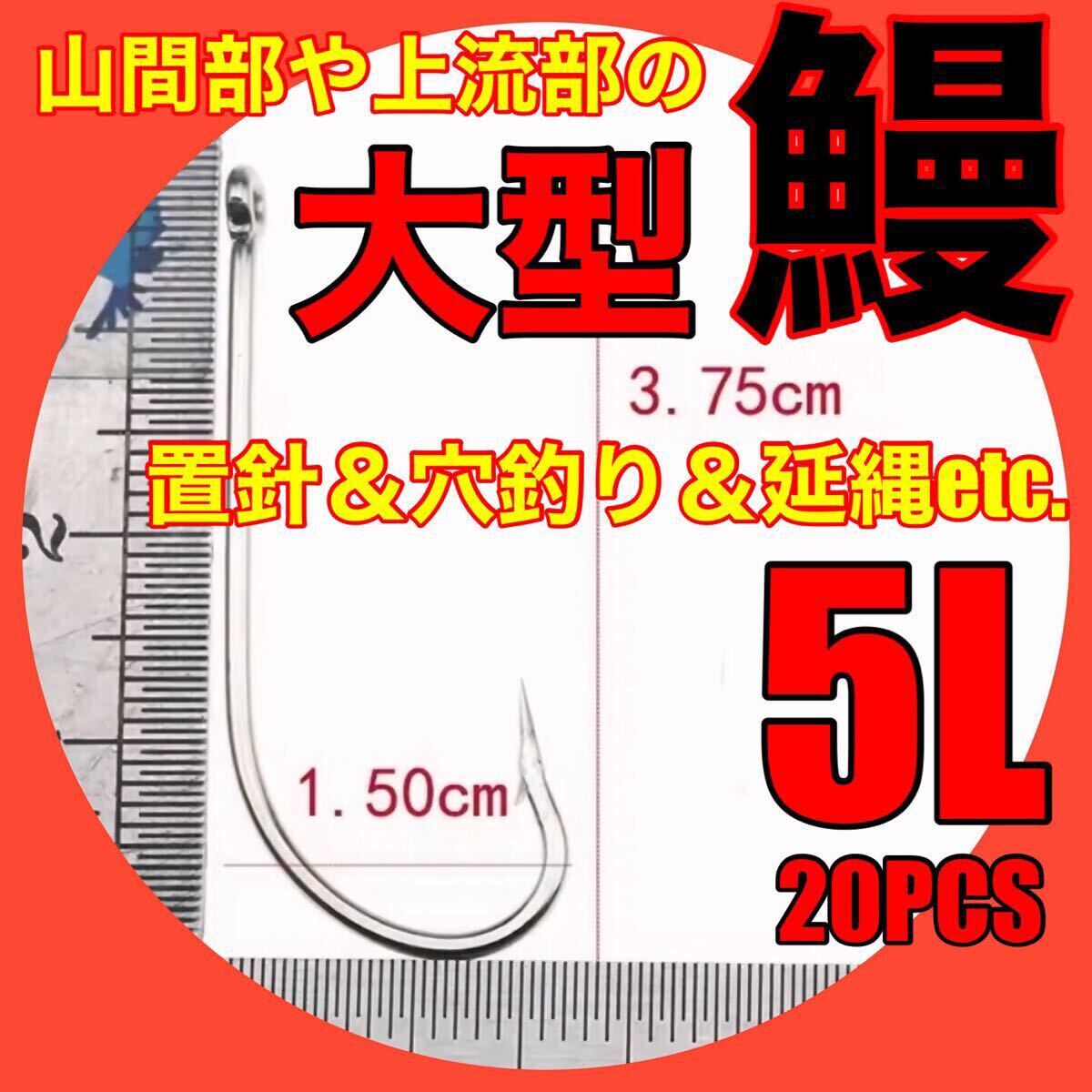 実は本商品はある人のために輸入をはじめました。彼、T氏は2023年に70代で他界しました。とにかく鰻の穴釣りの名人で、出品者は何回も同行したことがあるのですが、かならず出品者の倍以上の鰻を捕獲する人でした。視力が衰えてきて仕掛作りに苦労していたので、出品者が毎年(とは言っても晩年の2年くらいでしたが)仕掛に関して準備しました。T氏はとにかく「大きい針、大きい針」と出品者にリクエストしました。最終的にT氏のお気に入りになったのが本商品です。5LからLまでを出品者の手のひらに乗せて見せると、T氏その時の気分で「今日はコレ」とニヤリとしなが仕掛を選んで川に入って行きました。山間部や上流ではなく、実は目と鼻の先に海がある場所でもこれらの針を使っていました。小さい鰻はリリースしていたので、それをさける目的があったのだとも思われます。余談でした。