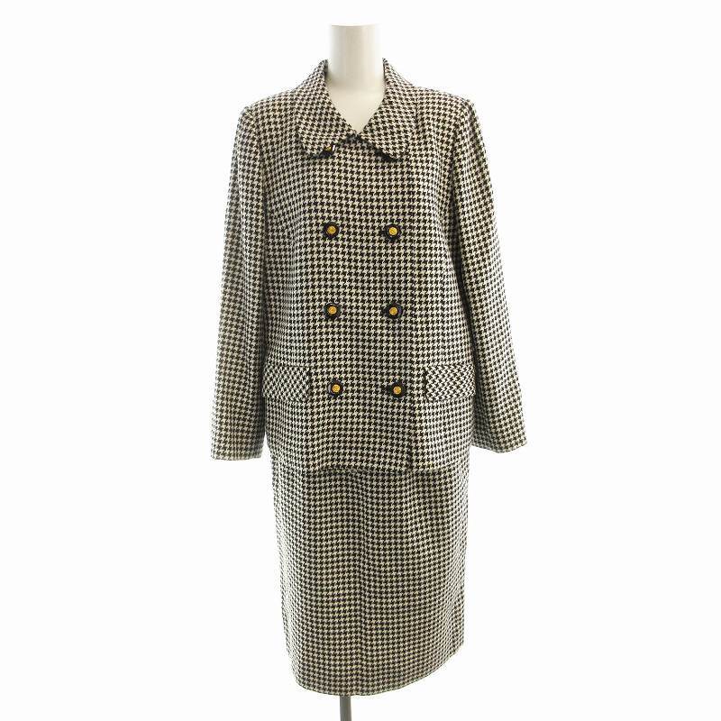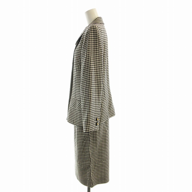レリアン スーツ セットアップ 上下 2点セット ジャケット スカート シルク混 ひざ丈 千鳥格子 大きいサイズ 13+ ブラック 1900642