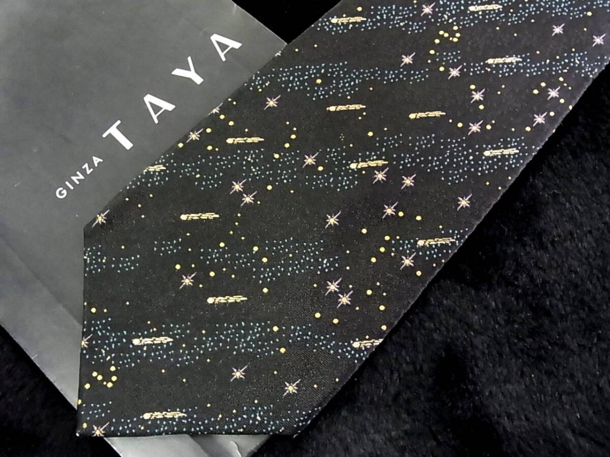 ★*:.【新品N】0260 銀座の老舗TAYA田屋【宇宙・星・スペースシャトル】ネクタイ
