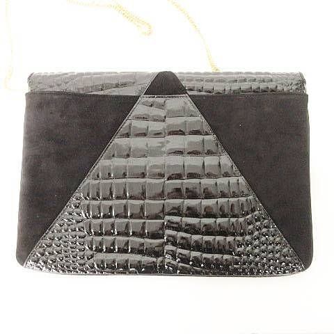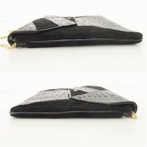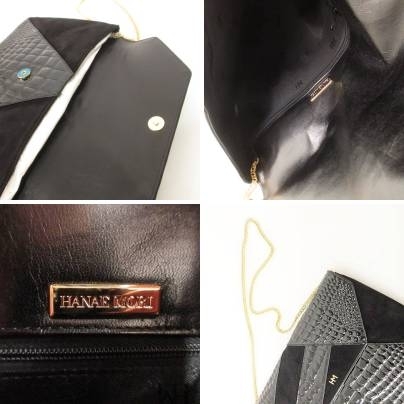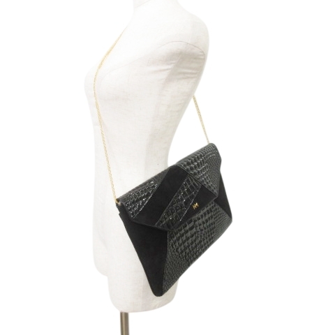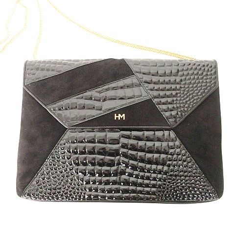 ハナエモリ HANAE MORI レザー 皮革 ショルダーバッグ クラッチ チェーン スエード エナメル パーティ 黒 ブラック ■GY99 レディース