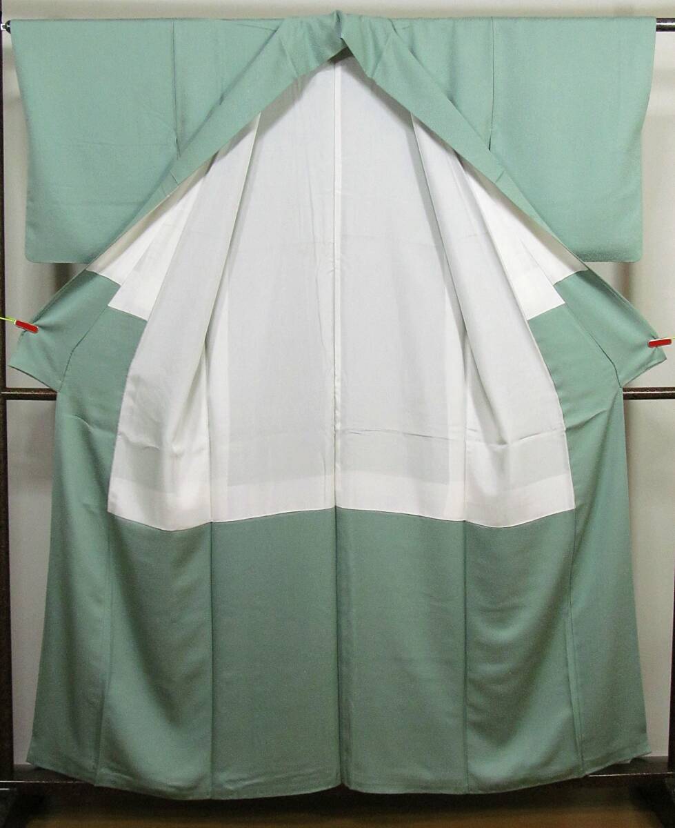 ね200 正絹 色無地着物 1つ紋入り ペパーミントグリーン系 美品 身丈158cm