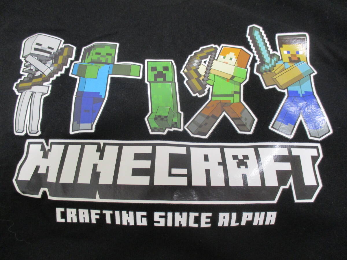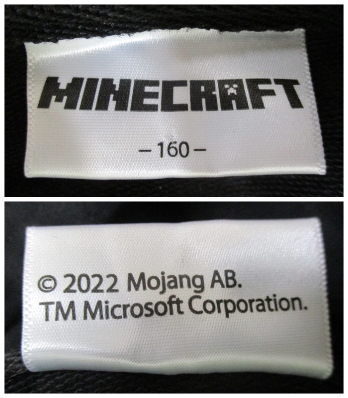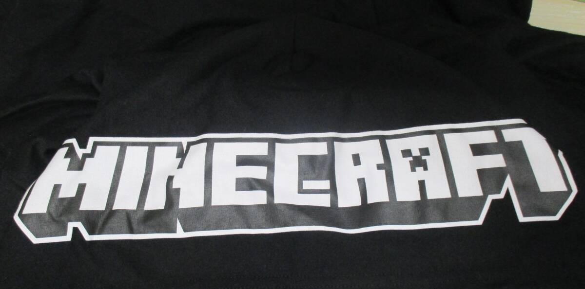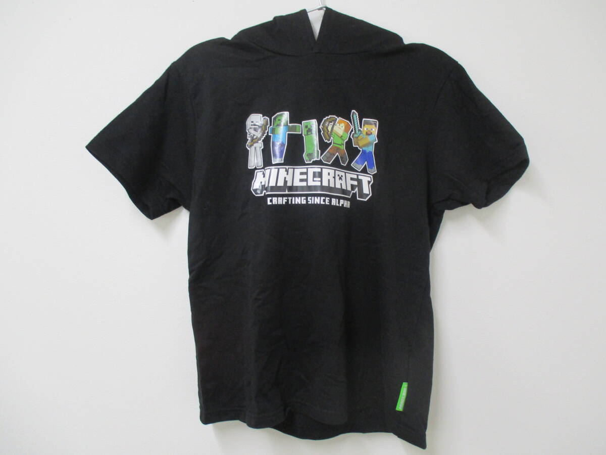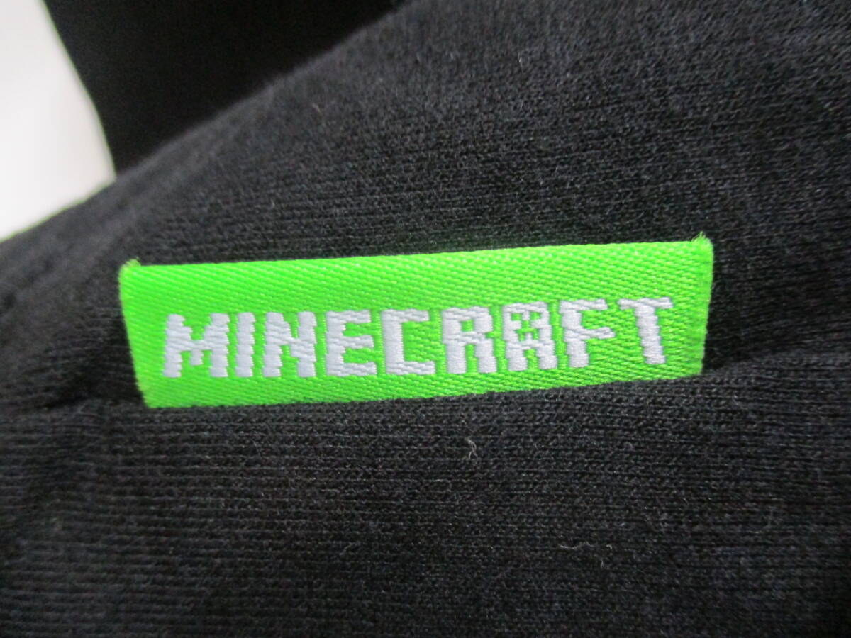 ★1349【送料無料】MINECRAFT マインクラフト 160 パーカー フード付き Tシャツ 半袖 裏毛 パイル ジュニア キッズ 黒 マイクラ