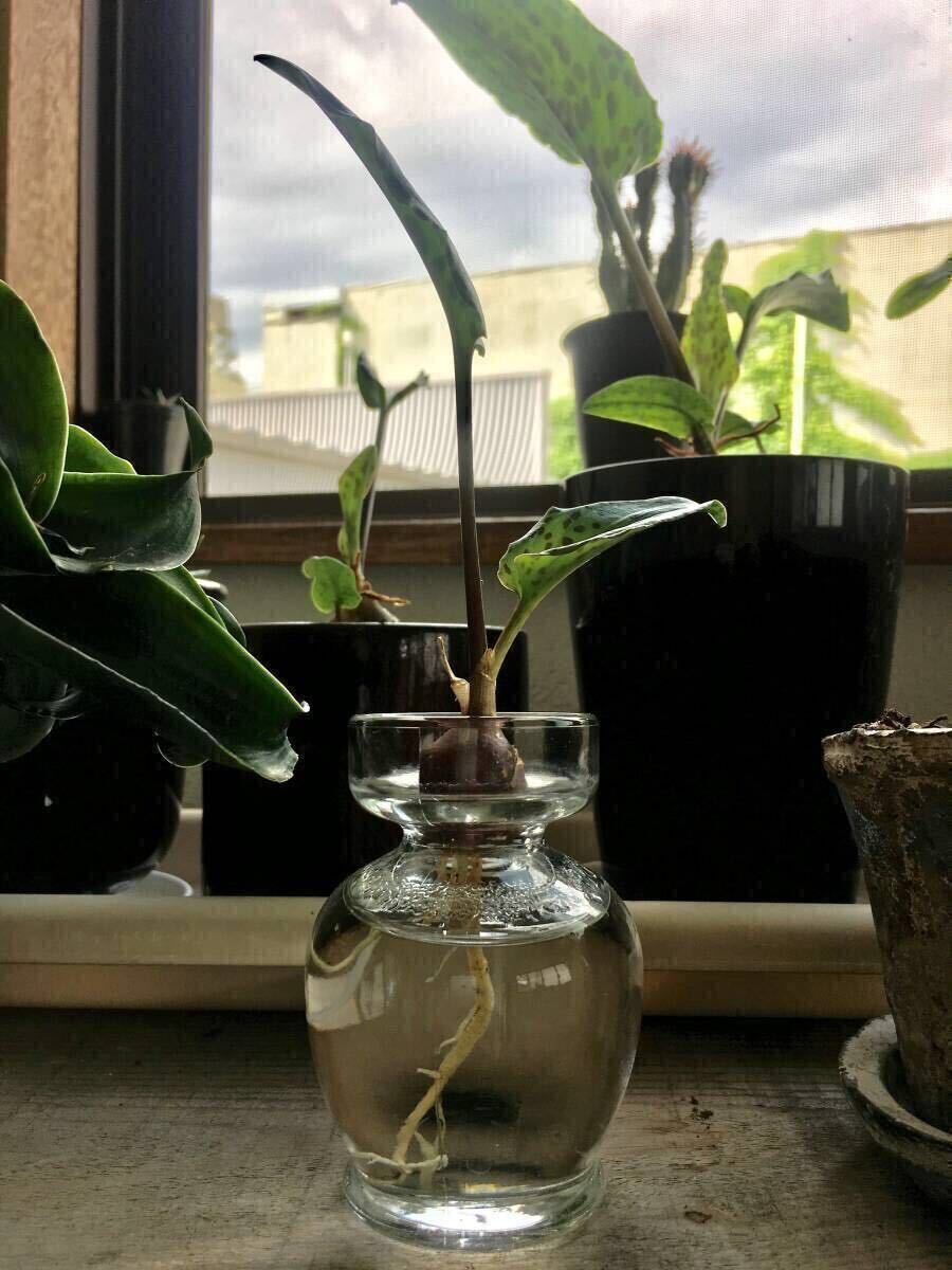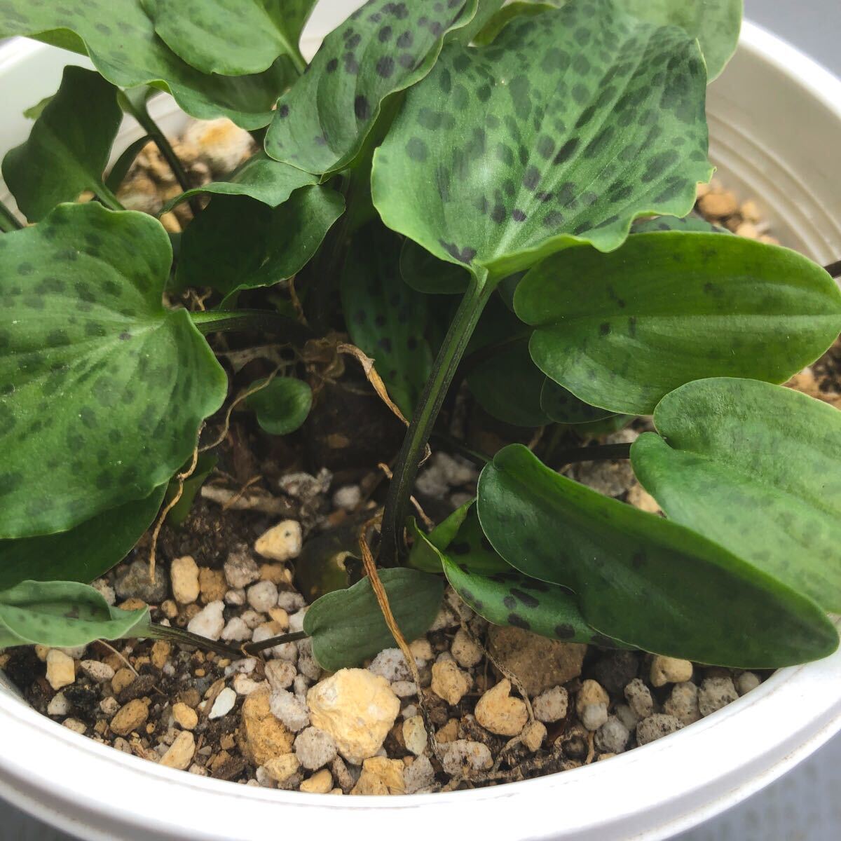 ドリミオプシス マクラータ。球根から斑入りの葉が出る、ピクミンを思わせる可愛い植物です。