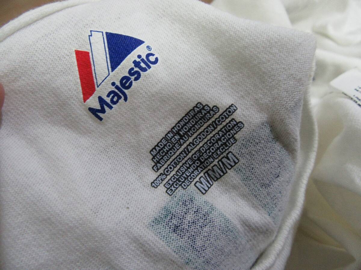 | ★マリナーズのTシャツです。 ★正規品 ★素材:画像をご参照下さい。 ★表記サイズ:M ★計測サイズ(平置き):着丈(後襟の付け根~裾)73cm 身幅(脇の下)52cm 素人採寸の為多少の誤差はご了承ください。 ★状態:USED 古い物ですので多少の使用感はありますが着用に問題のある大きなダメージは特にありません。画像にて判断願います。 |