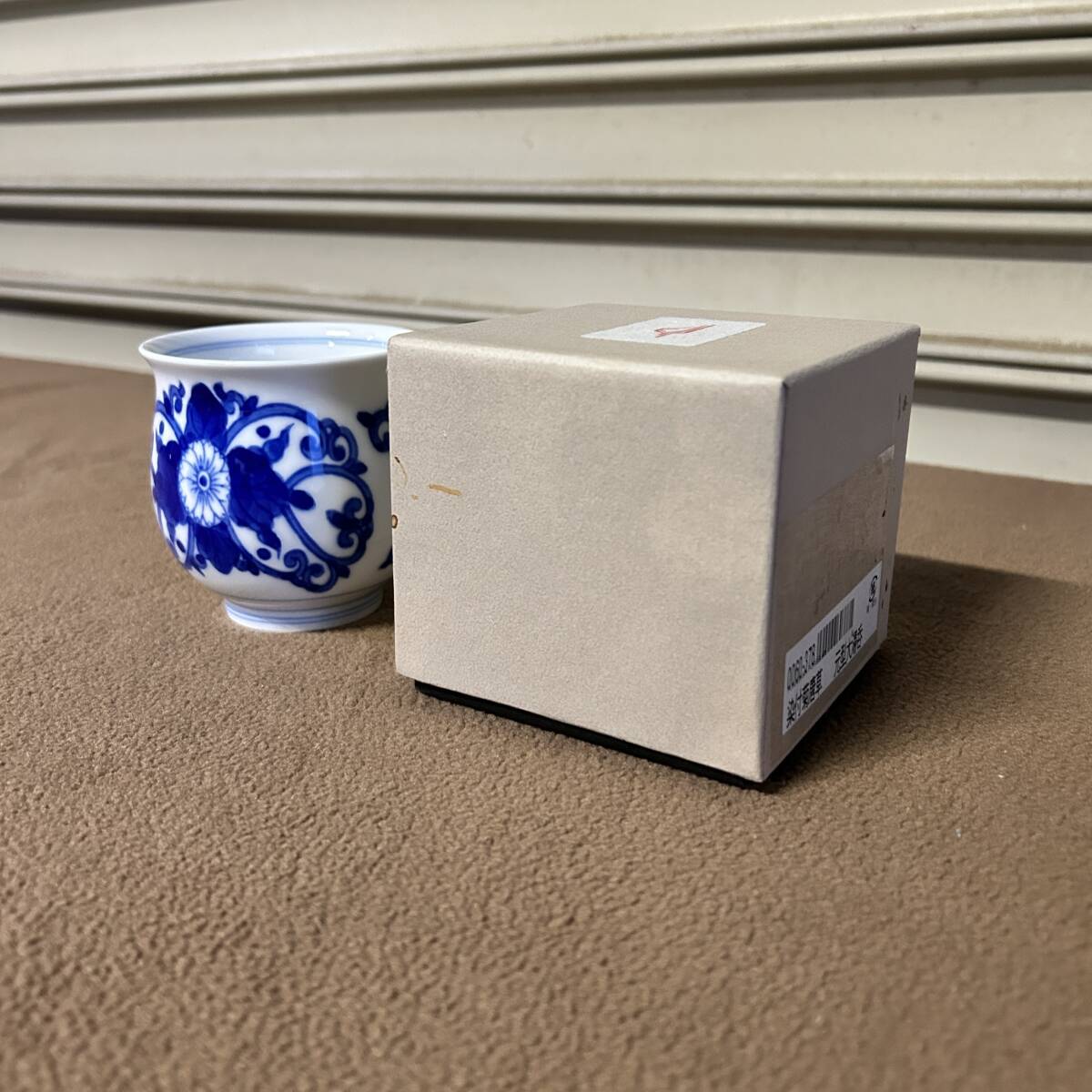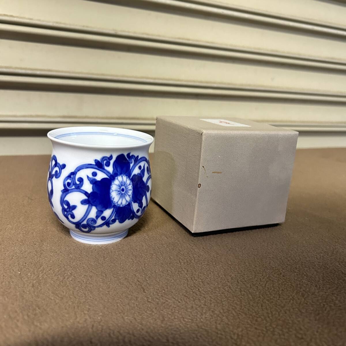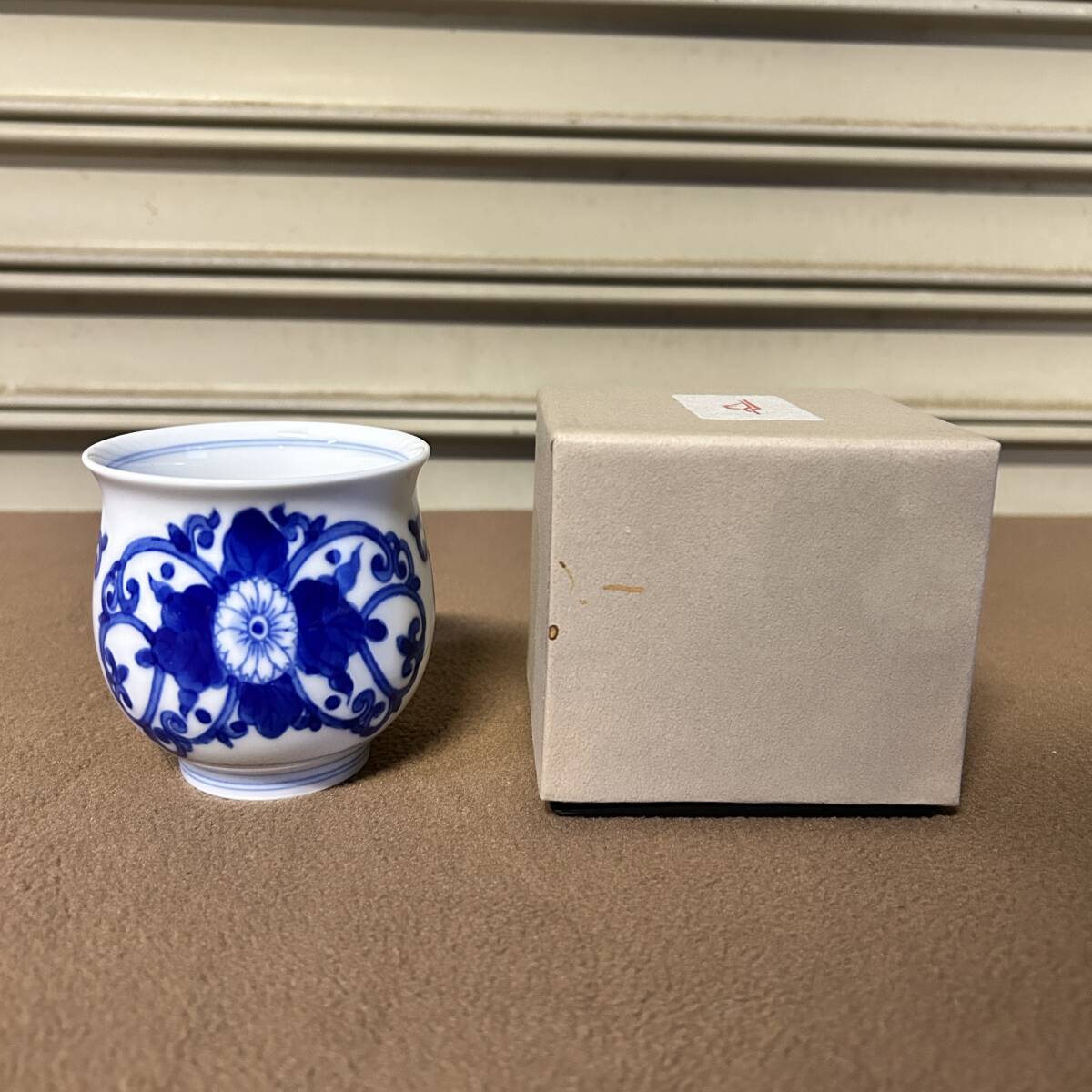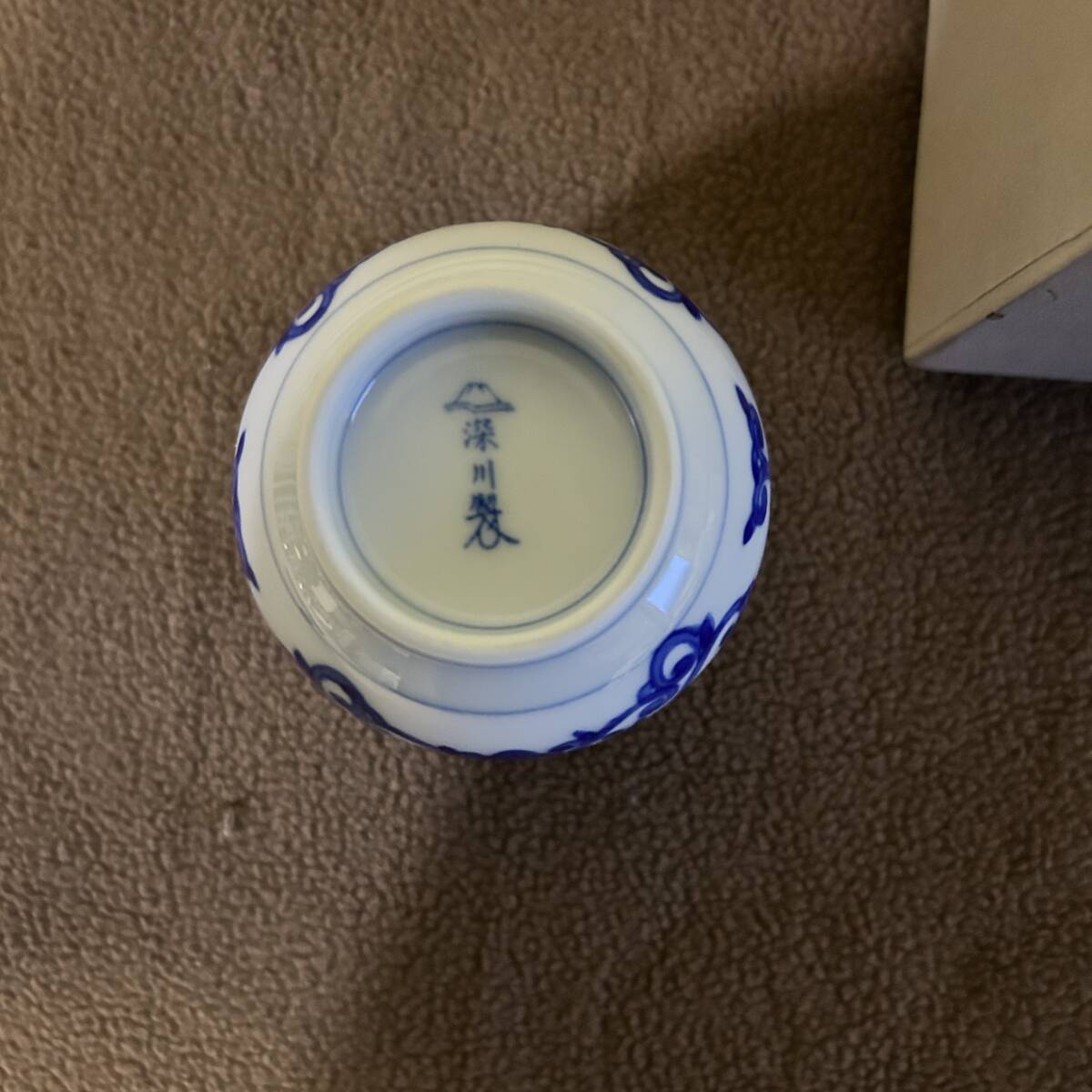 CF58 ★深川製★ 希少 深川製磁 湯呑み 元型大湯呑 染付菊唐草 6