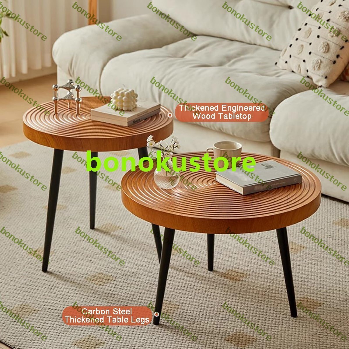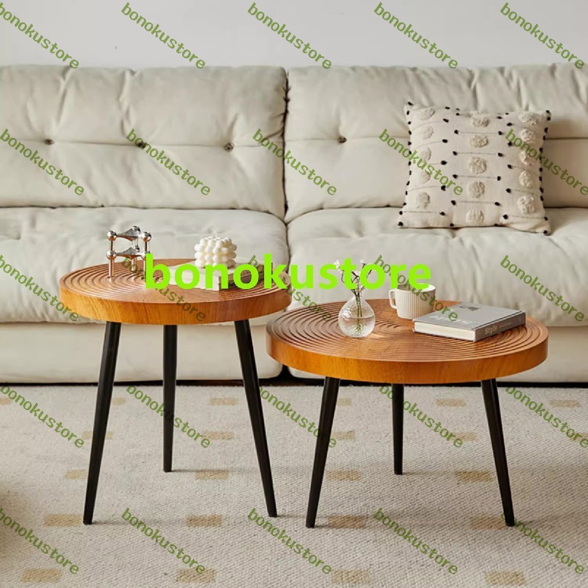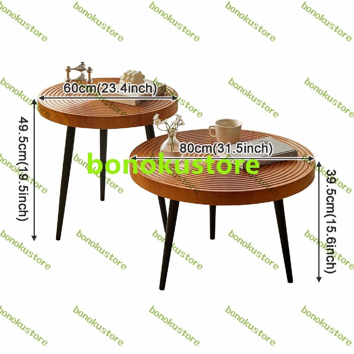 軽くて豪華なデザインスタイルは、視覚的な拘束感を軽減します。シンプルモダンな美しさは、デザイン美的な外観を持っています。デザインスタイルは明るく派手すぎず、空間全体に美しさとハイライトを加えます。ライトで贅沢な生活の魅力を表現しています。カクテルティーテーブルには、さまざまなアイテムや装飾品を表示することで、空間に個性とスタイルを加えることができます。仕様:製品名:ラウンドコーヒーテーブルセットデスクトップの素材:人工木材フレーム材質:金属寸法:大きなコーヒーテーブル: 80 x 80 x 39.5 cm (31.5 x 31.5 x 15.6 インチ)、小さなサイドテーブル: 60 x 60 x 49.5 cm (23.6 x 23.6 x 19.5 インチ)形状:ラウンド適用シーン:リビングルーム、休憩エリア、応接室、オフィス、ホテル、コーヒーショップなどパッケージ内容:2×コーヒーテーブル