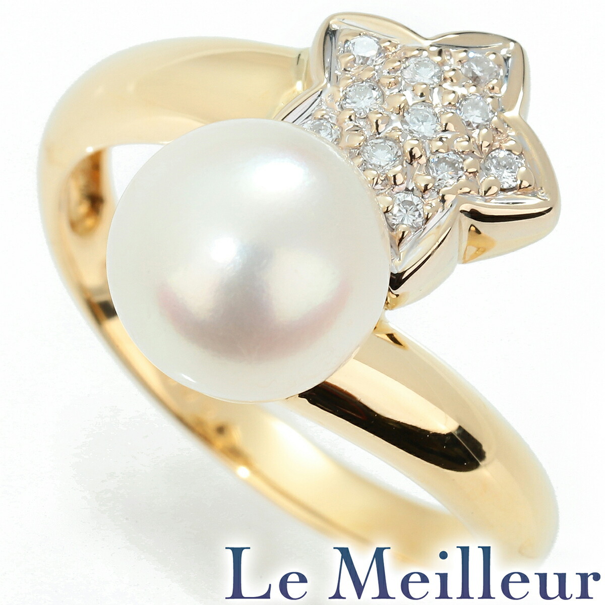 真珠のやさしい艶めきに、小さな星がきらりと寄り添う可愛らしいデザイン。イエローゴールドの温かな輝きが肌になじみ、手元にふんわりとした明るさを添えます。見るたび気分が上がる、心はずむようなリングです。