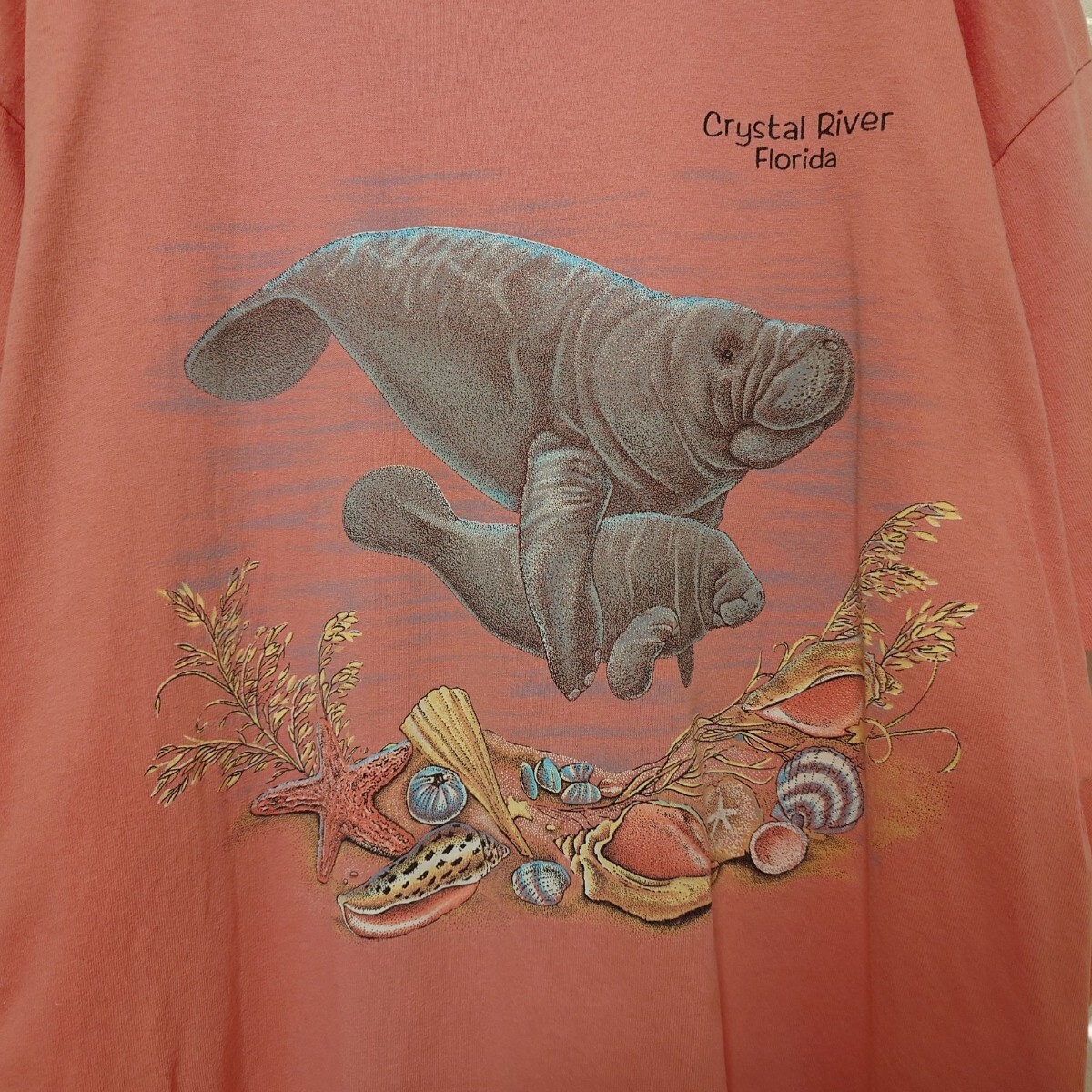 90年代 USA製 シングルステッチ アニマルアート マナティTシャツです。