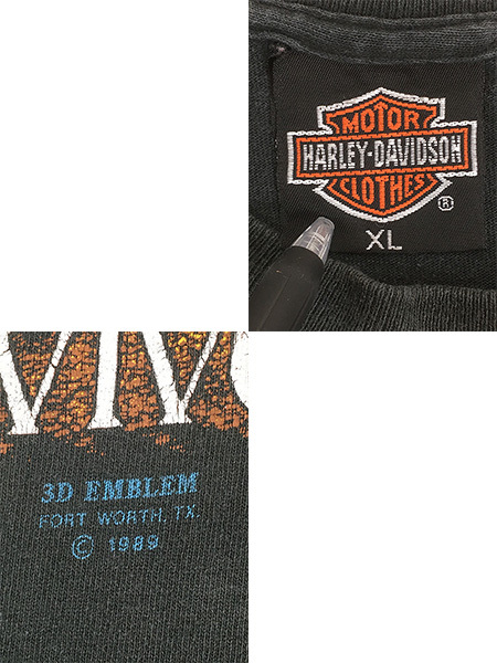 裾袖シングルステッチ、「3D EMBLEM 1989」のコピーライト入り。