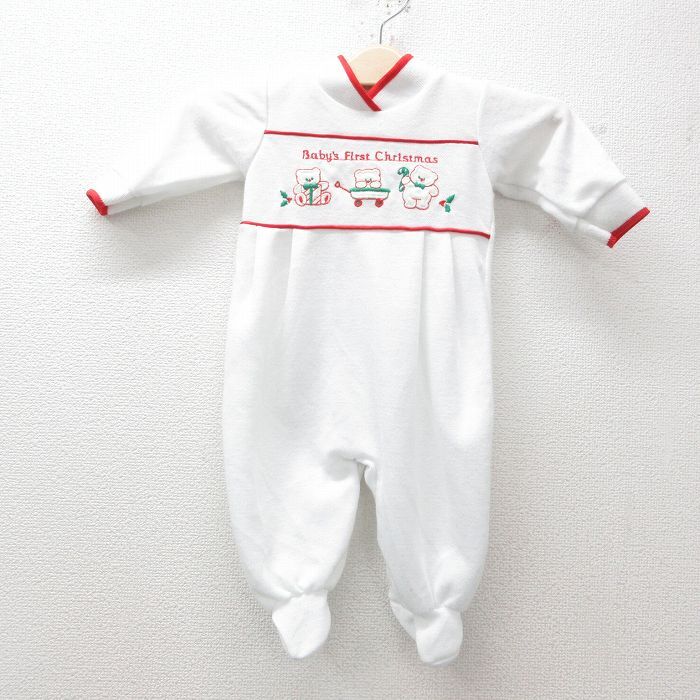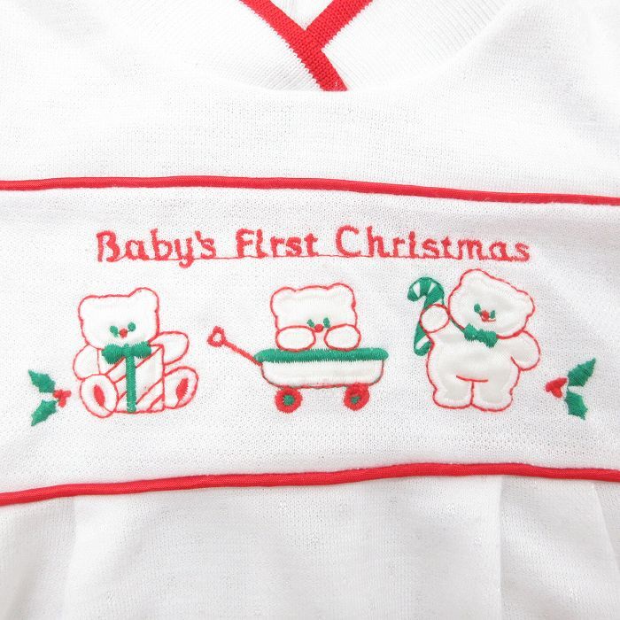 【商品名】 古着 長袖 ビンテージ ロンパース キッズ ボーイズ 子供服 80年代 80s クマ クリスマス Vネック USA製 白他