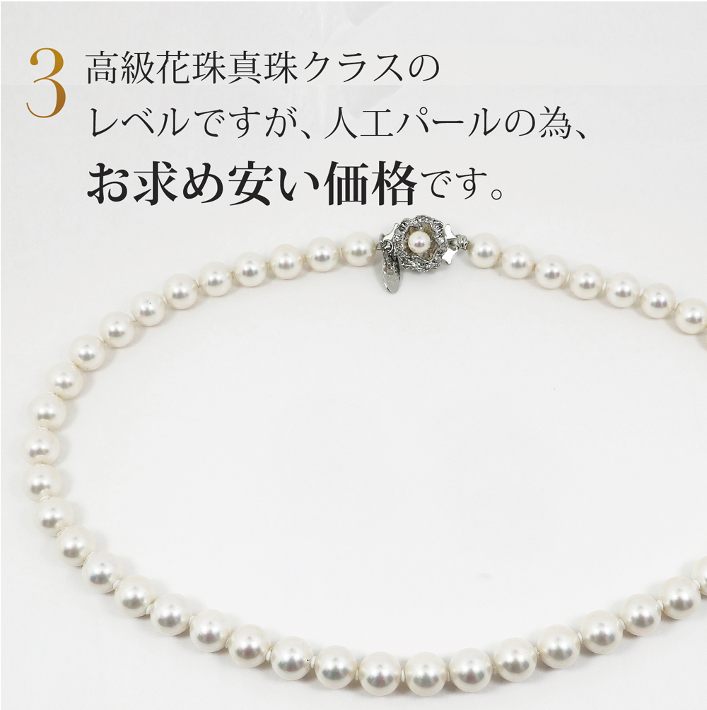 本真珠に肉薄する微妙な彩り、質感までも精巧に再現しています。