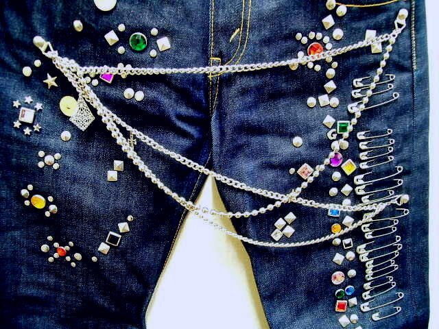 ◇即決[S]JUNYA WATANABE MAN PINK アーカイブ AD2002 スタッズ 安全ピン チェーン デニム 濃紺 COMME des GARCONS パンツ ARCHIVE■4801