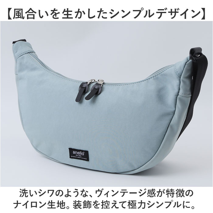 商品説明 | ・・【サッと持ち出せてお出かけの相棒に】 ・anelloのサイクルシリーズから、身軽にお出かけできる!ショルダーが新登場。 ・【風合いを生かしたシンプルデザイン】 ・洗いシワのような、ヴィンテージ感が特徴のナイロン生地。装飾を控えて極力シンプルに。 ・【両手が空いてストレスフリー】 ・長さ調節可能なショルダーベルトを使って、肩掛けや斜め掛け。アクティブに動く日も快適。 ・【ガバっと開いて出し入れスムーズ】 ・開口部が広いバナナ型。大きく開いて中を見渡しやすく、使い勝手抜群。 ・【左右どちらからもオープン】 ・開閉しやすいダブルファスナー式。ファスナーを閉じれば、プライバシーも確保◎ ・【マストアイテムがひとまとめ】 ・A5サイズやペットボトル、長財布が横向きに。スリムなマチで、人混みでも邪魔になりにくい! ・【サッと取り出せて迷子知らず】 ・内側と外側合わせて2つのポケット配置。バッグの中で小物を探す手間が不要。 ・【体に負担をかけない軽量設計】 ・軽やかな使い心地で、移動の多い日も安心。お買い物やレジャー、旅行などで重宝。 ・【ちょっとの雨なら大丈夫】 ・表面は汚れや水滴を弾きやすい、撥水加工済み。お手入れも拭き取るだけ。 ・(※)完全防水ではありません。 ・【お気に入りを選べるカラー】 ・年代問わず持ちやすい、落ち着きのあるカラー☆フロントタグや引き手がさりげないアクセント。 ・【ポケット仕様】 ・内側:オープンポケット×1 ・背面:ファスナーポケット×1 |