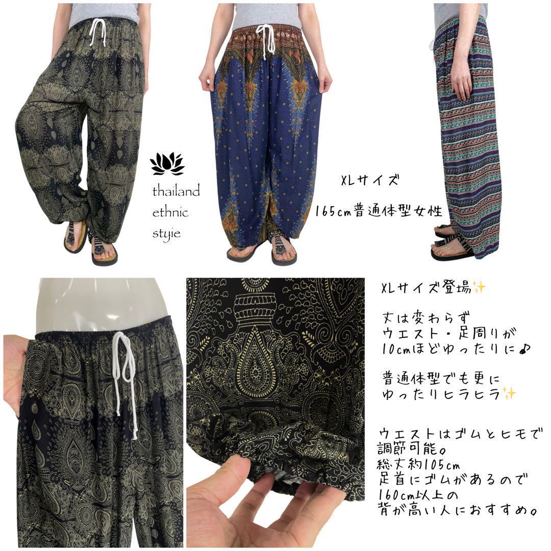 【新品】アラジンパンツ タイパンツ ヨガ タイマッサージ レーヨン サルエルパンツ ゴムヒモ 大きいサイズXL Y253 G柄ブラック