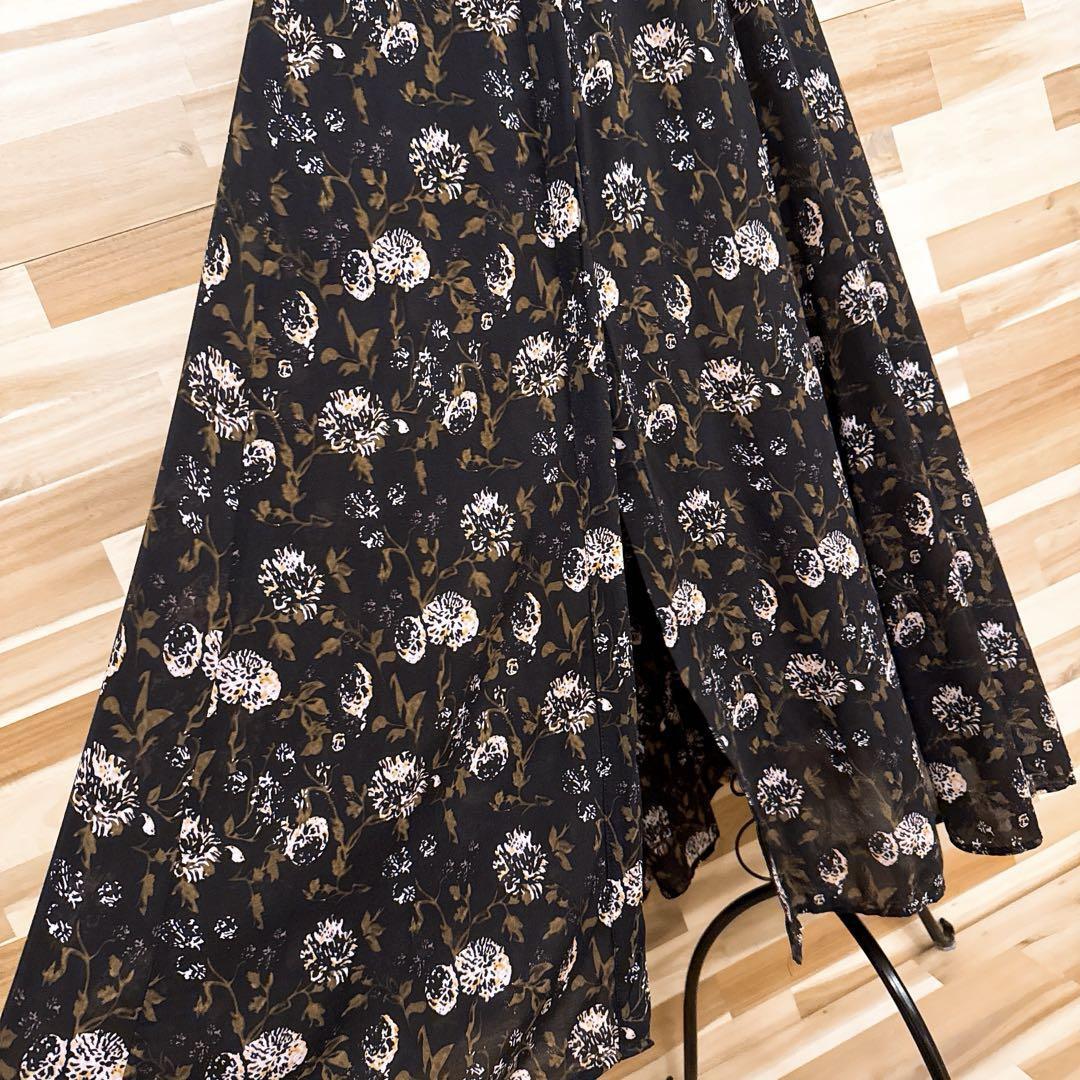 さらりとした柔らかな素材が落ち感を生み、動くたびに自然な揺れを楽しめるロングシルエット。ブラックベースに映えるくすみピンクやベージュのフラワープリントが、控えめながらも印象的なアクセントをプラス。スニーカーで抜け感を出したり、ヒールでクラシカルにまとめたり、気分に合わせてコーディネートをお楽しみいただけるZARA WOMANのワンピースです。※LGスタイラーにて除菌リフレッシュ・スチームクリーニング済みです。