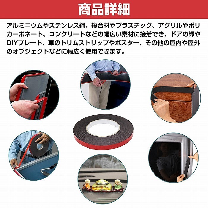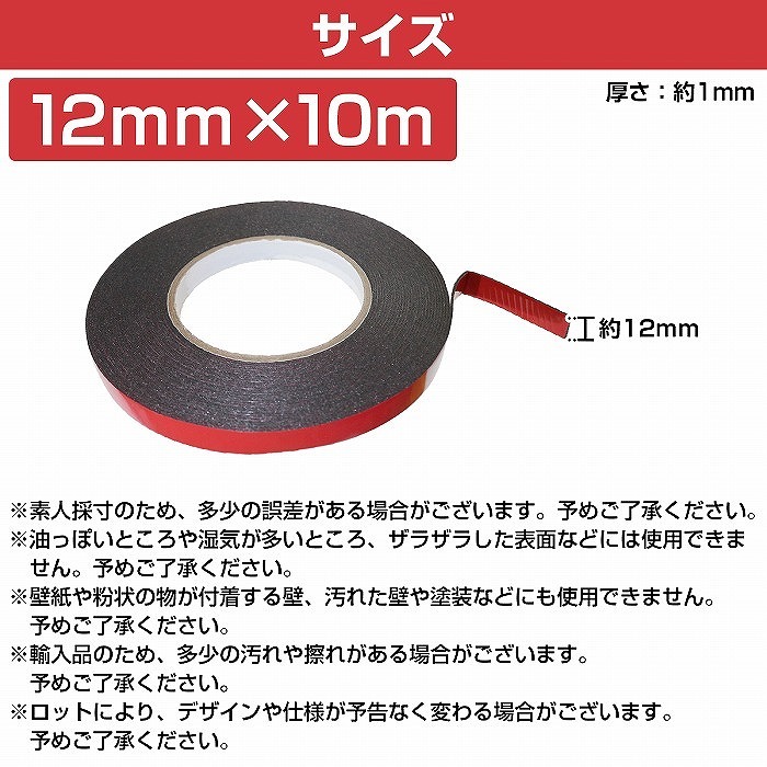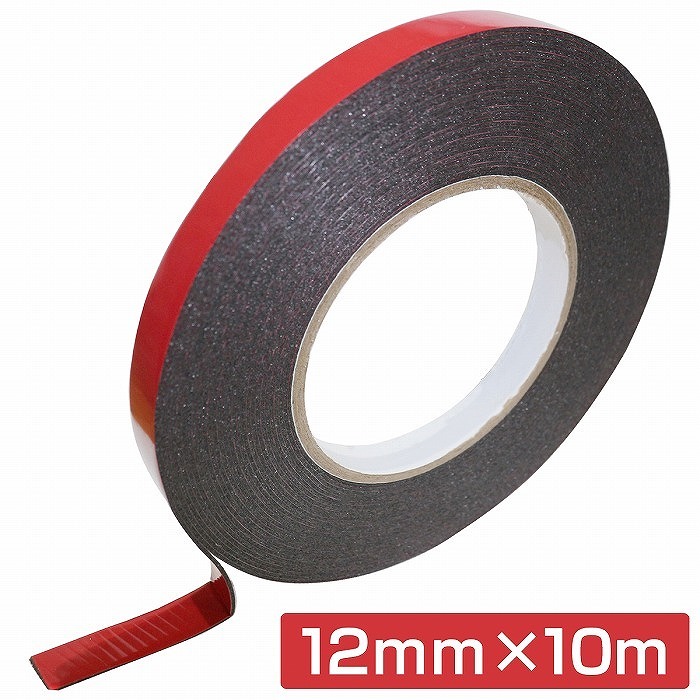 【送料220円】[幅12mm 長さ10m] 強力 両面テープ 厚さ1mm 屋外 屋内 車 バイク DIY エアロ ウイング スポイラー 外装 内装 黒 ブラック