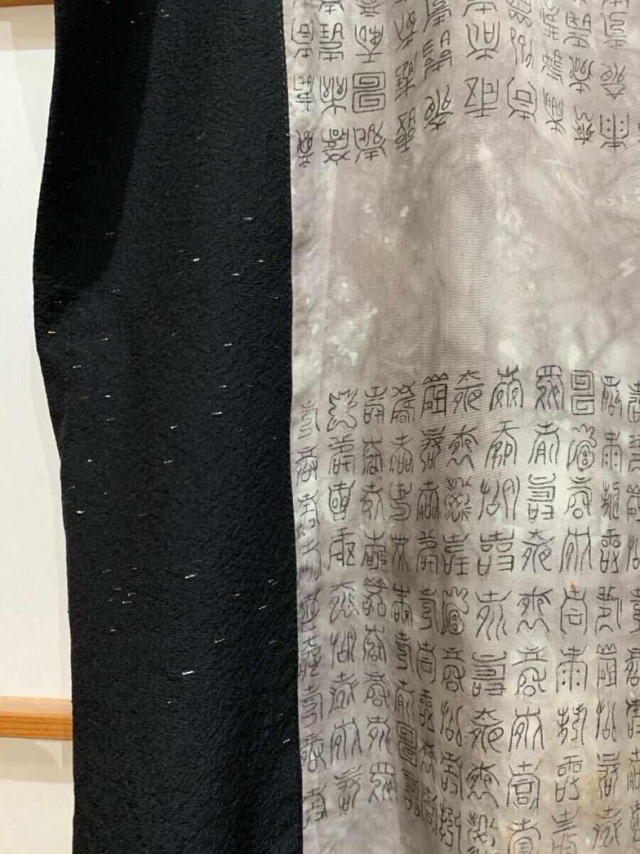 正絹です。黒地は薄地です。パッチ1ヶ所あります。