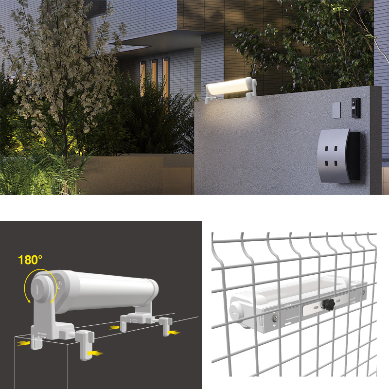 ・家のブロック塀やフェンスに工事無しで簡単に取り付けができ、手軽に防犯照明や便利灯としてお使いいただけます。