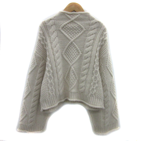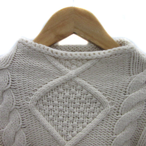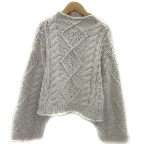 ケイビーエフ KBF アーバンリサーチ ニット セーター 長袖 ハイネック ローゲージ ケーブル編み ウール混 One オフホワイト レディース