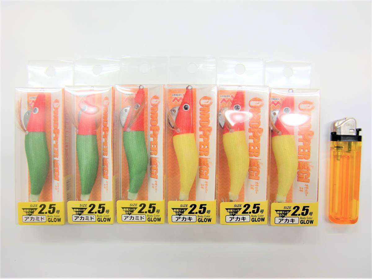 商品説明 | 新品のオモッパーエギ2.5号 6個セットになります。 セット内容 アカミド 3個 アカキ 3個 ライターは大きさを比較する為に使用した物で付属はしません。 詳しくは画像を参考にして入札して頂く様お願い致します。 オモリグやイカメタルのドロッパーに最適。 夜焚で実績の高いスッテカラーを中心にラインナップ!! |
