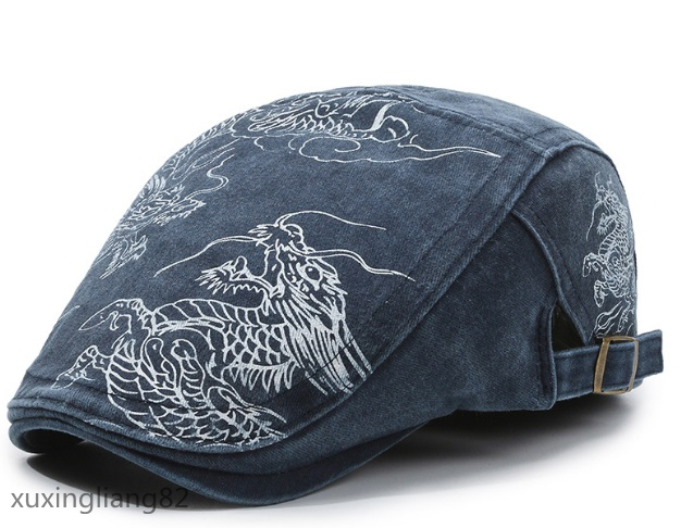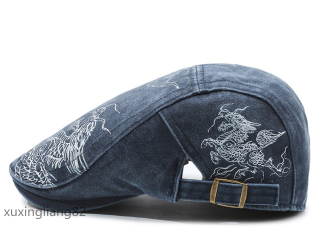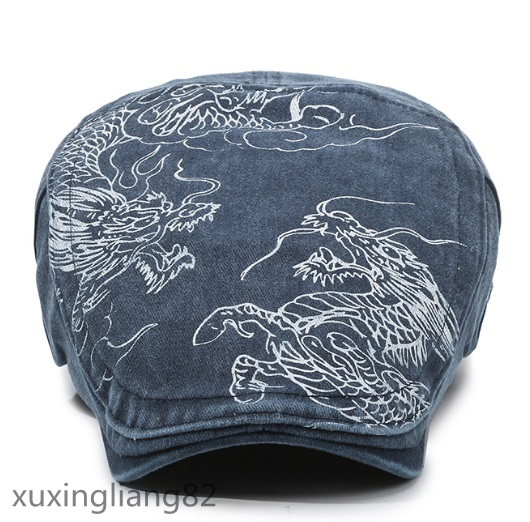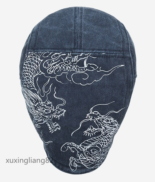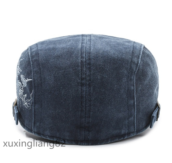 デニムハンチング ベレー帽子 メンズ 龍柄 大きいサイズ 通気性抜群 ゴルフ 男女兼用 サイズ調整 ウォッシュ ブルー