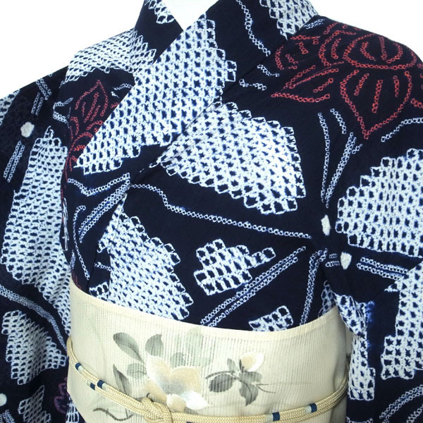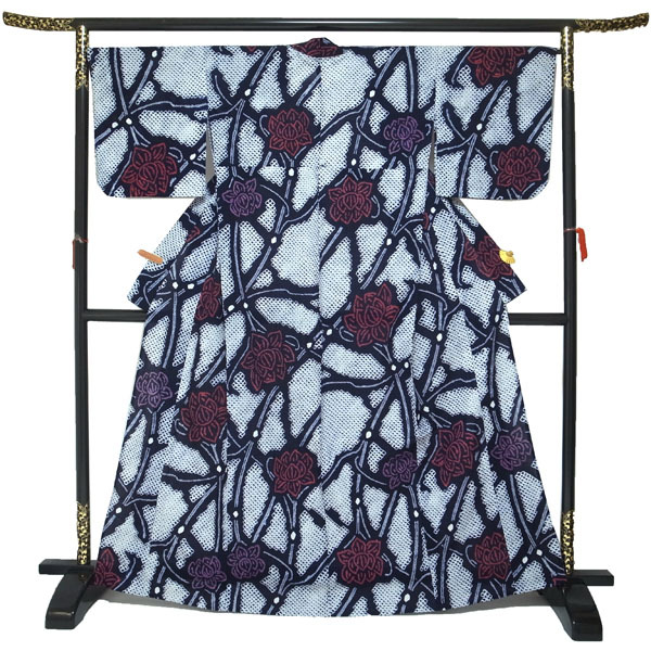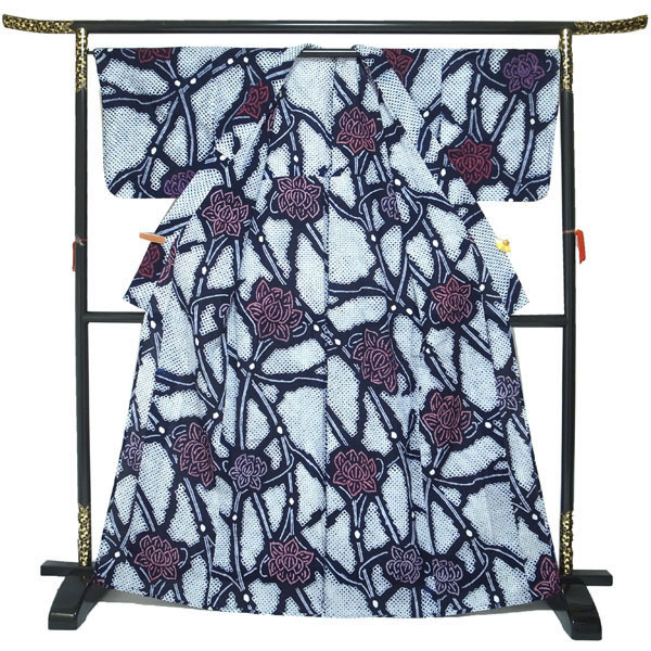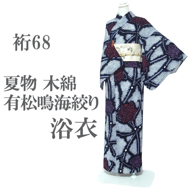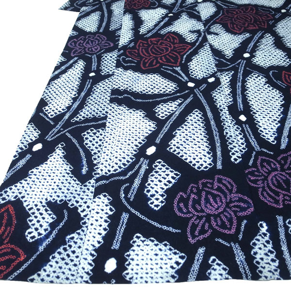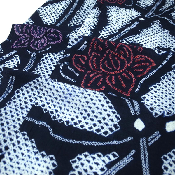 浴衣 ゆかた 有松鳴海絞り 有松 鳴海 絞り 単衣 夏物 夏 なつ 木綿 綿 花 お花 フラワー 濃紺色 濃紺 紺 ネイビー 上質 上品 粋 シック おしゃれ オシャレ お洒落 リメイク リユース リサイクル なごみ 身丈164 裄68 Lサイズ 中古 仕立て上がり品 sn1573