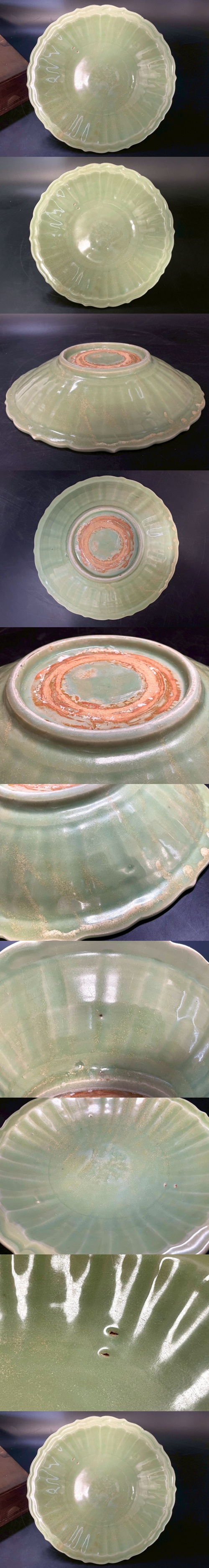 | 時代 青磁 大皿 木箱付 / 中国美術 皿 飾皿 茶器 煎茶道具 検索: 龍泉窯 天龍寺 七官青磁 .G1798 |