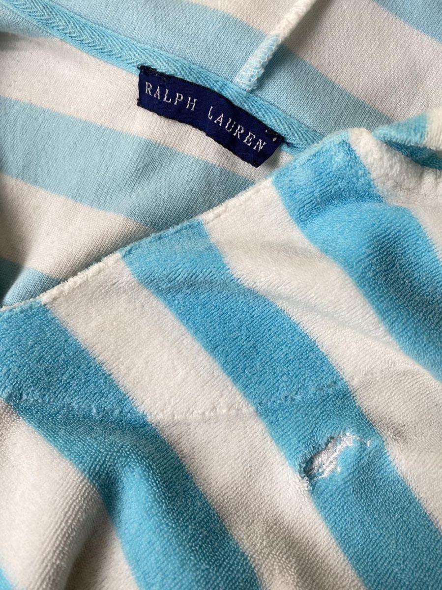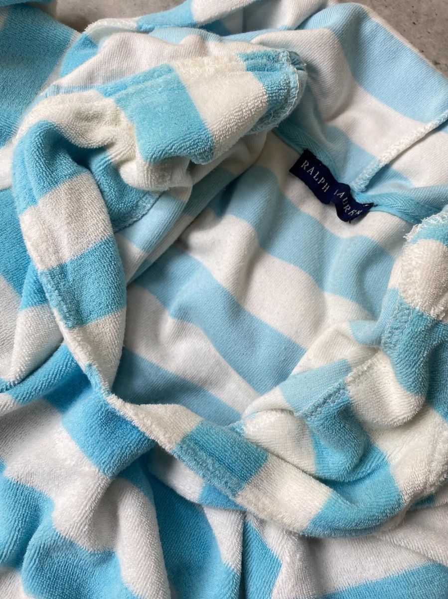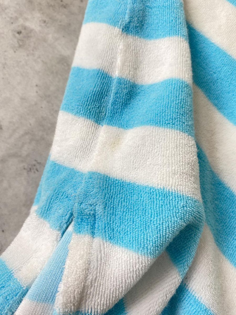 商品の状態 | 使用感がございますが、まだまだ活躍してくれると思います。 品質タグがありませんので、素材の詳細は不明です。 襟の裏側のタオル地部分にやや黄ばみがあります。背面左裾に薄いシミ汚れがあります。裏地に毛玉があります。 (当方管理番号:syff187048-t) | ||||||||||
