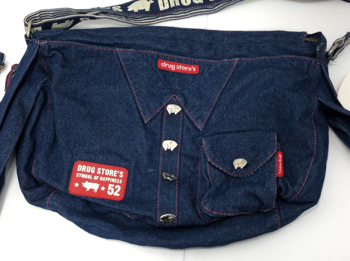 タグ付き ドラッグストアーズ drug store's デニム ショルダーバッグ シャツデザイン D29