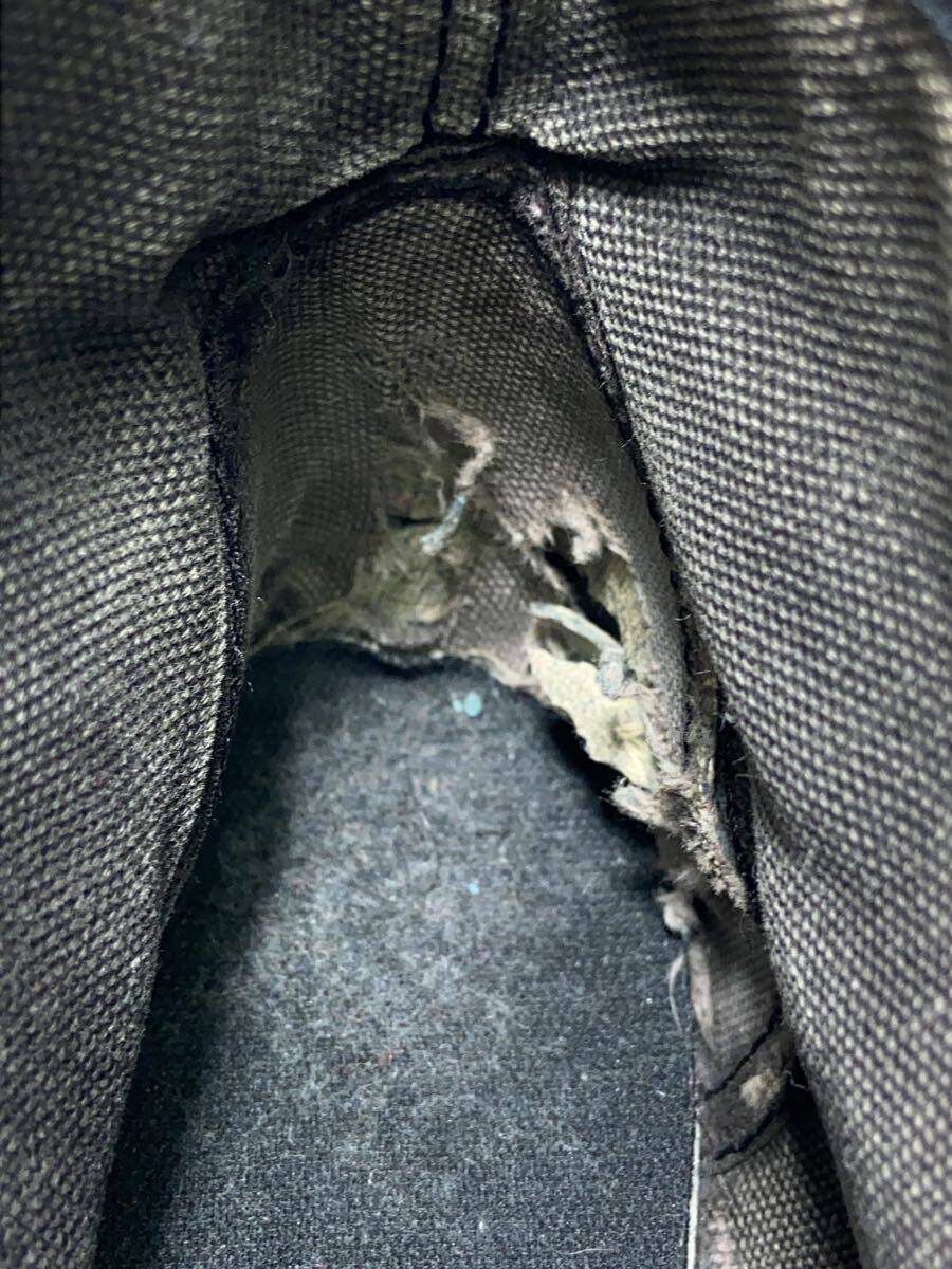 | 全体的に使用感のあるお品物です。 内側のかかと部分にダメージがございます。かかとのすり減りがございます。 使用に問題のあるダメージはありません。 |